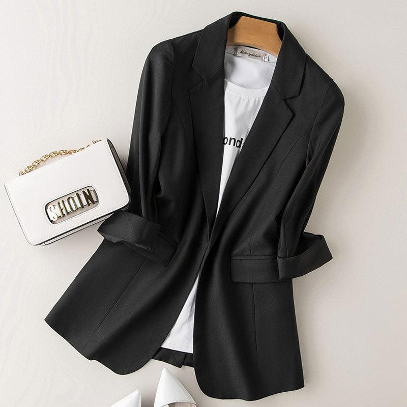 Черный маленький костюм женский 2023 новый тонкий костюм с рукавом с семью точками плюс размер женской одежды [0316]