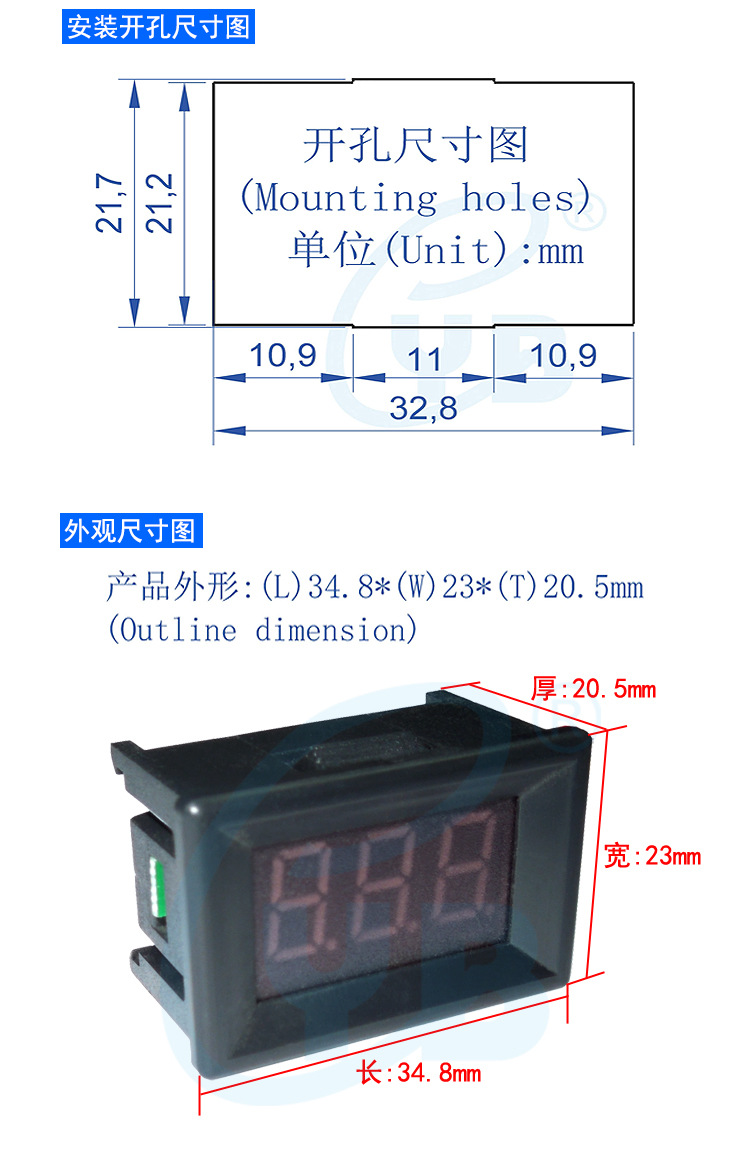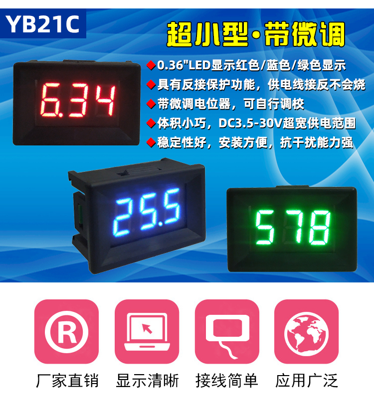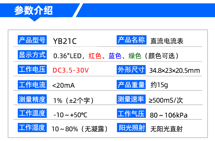 YB21C сверхмалый цифровой амперметр постоянного тока 0,36-дюймовый микро-ампер 100 мкА цифровой дисплей 1 мА измерительная головка постоянного тока 5А