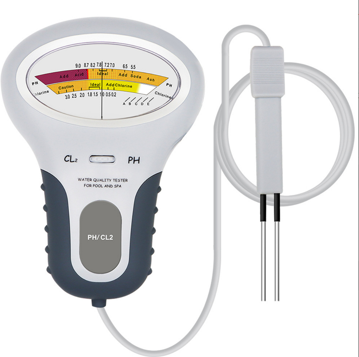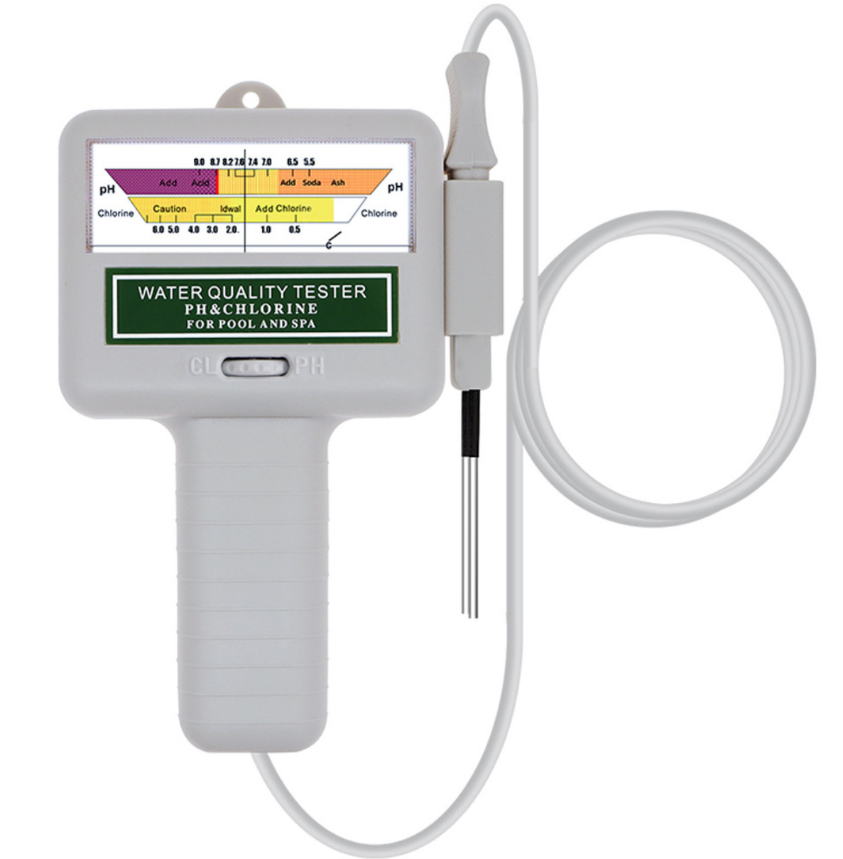 An electro-tester for testing pH and chlorine (Cl2) levels in water for routine monitoring of pH and chlorine levels of swimming pools, spas and different water sources.