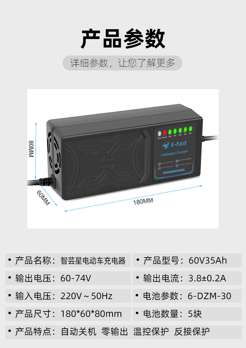 60V30AH зарядное устройство для электромобиля 7 ламп дисплей мощности обратное соединение защита от температуры полное отключение