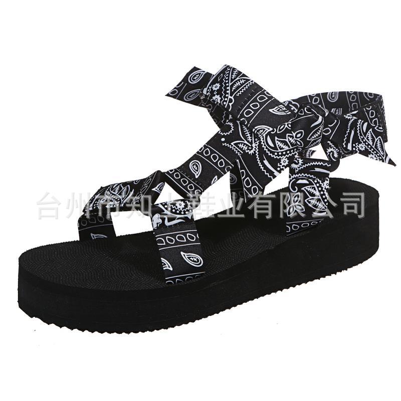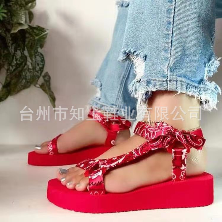 Сандалии для внешней торговли женские 21 год европейские и американские туфли на танкетке с бантом и липучкой трансграничные сандалии больших размеров с принтом в наличии Размер 43