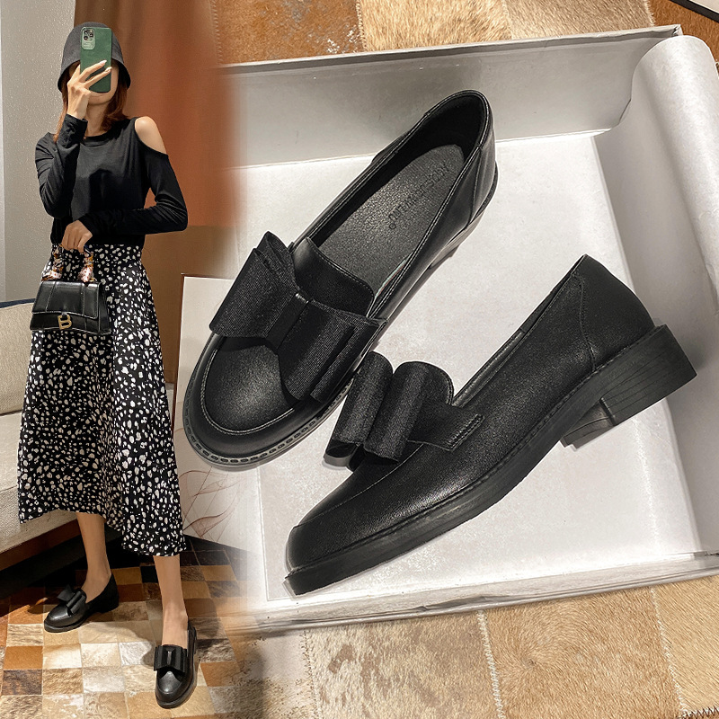 Маленькие женские кожаные туфли из натуральной кожи, осень 2025 г., черные туфли на плоской подошве в британском стиле, тонкие мягкие кожаные шапочки на среднем каблуке, профессиональная рабочая обувь
