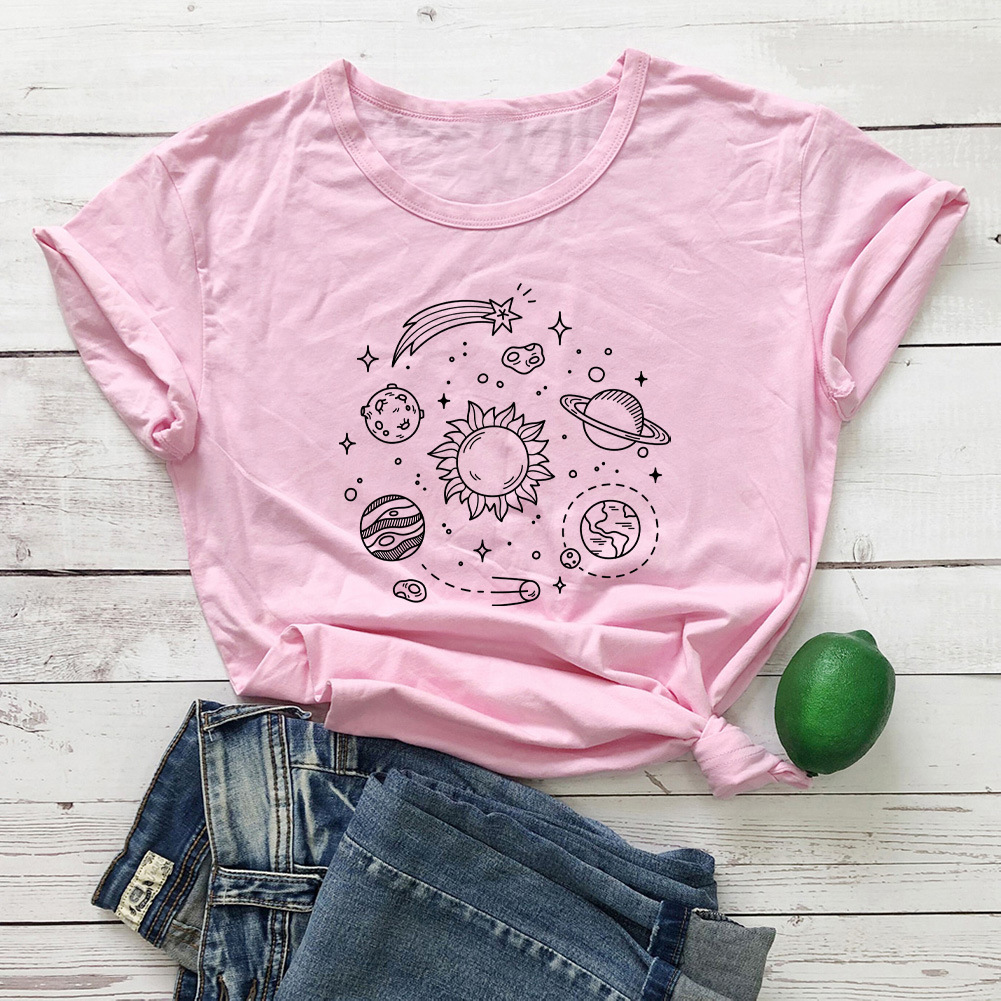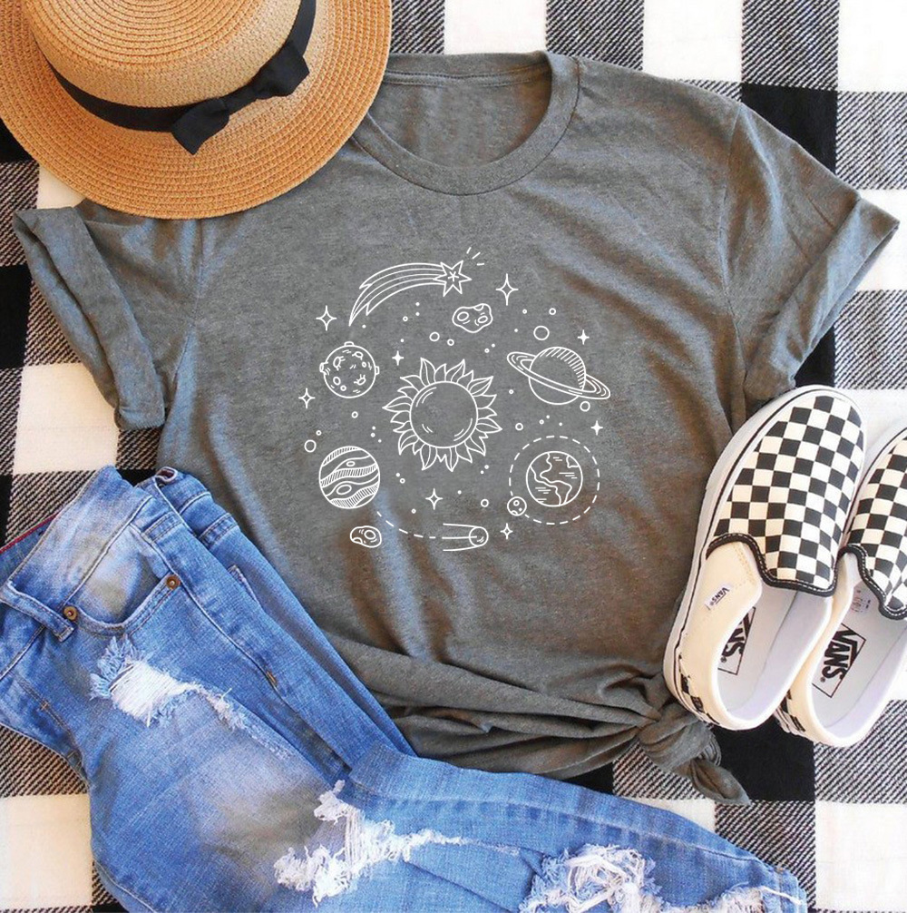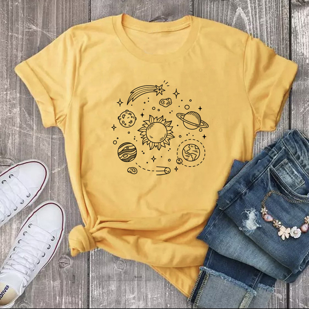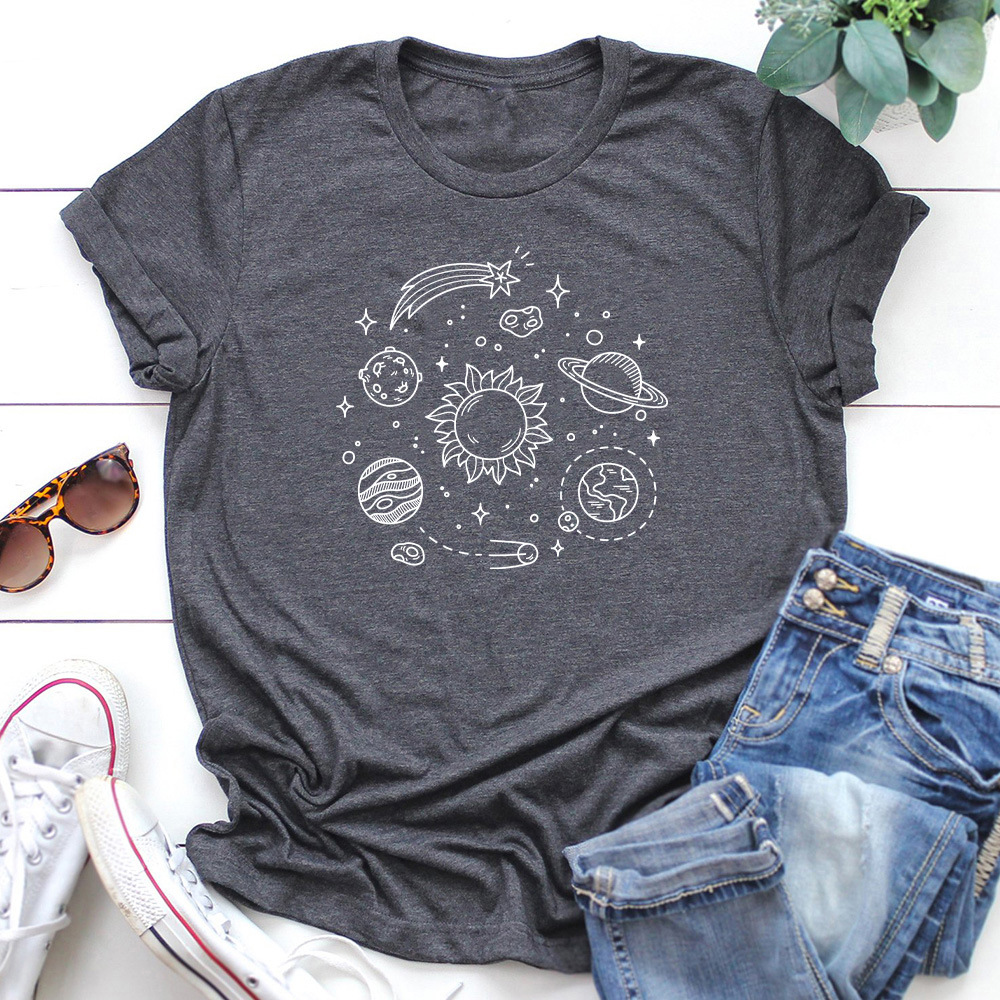 Футболка Космическая планета Новая мода с коротким рукавом и буквенным принтом