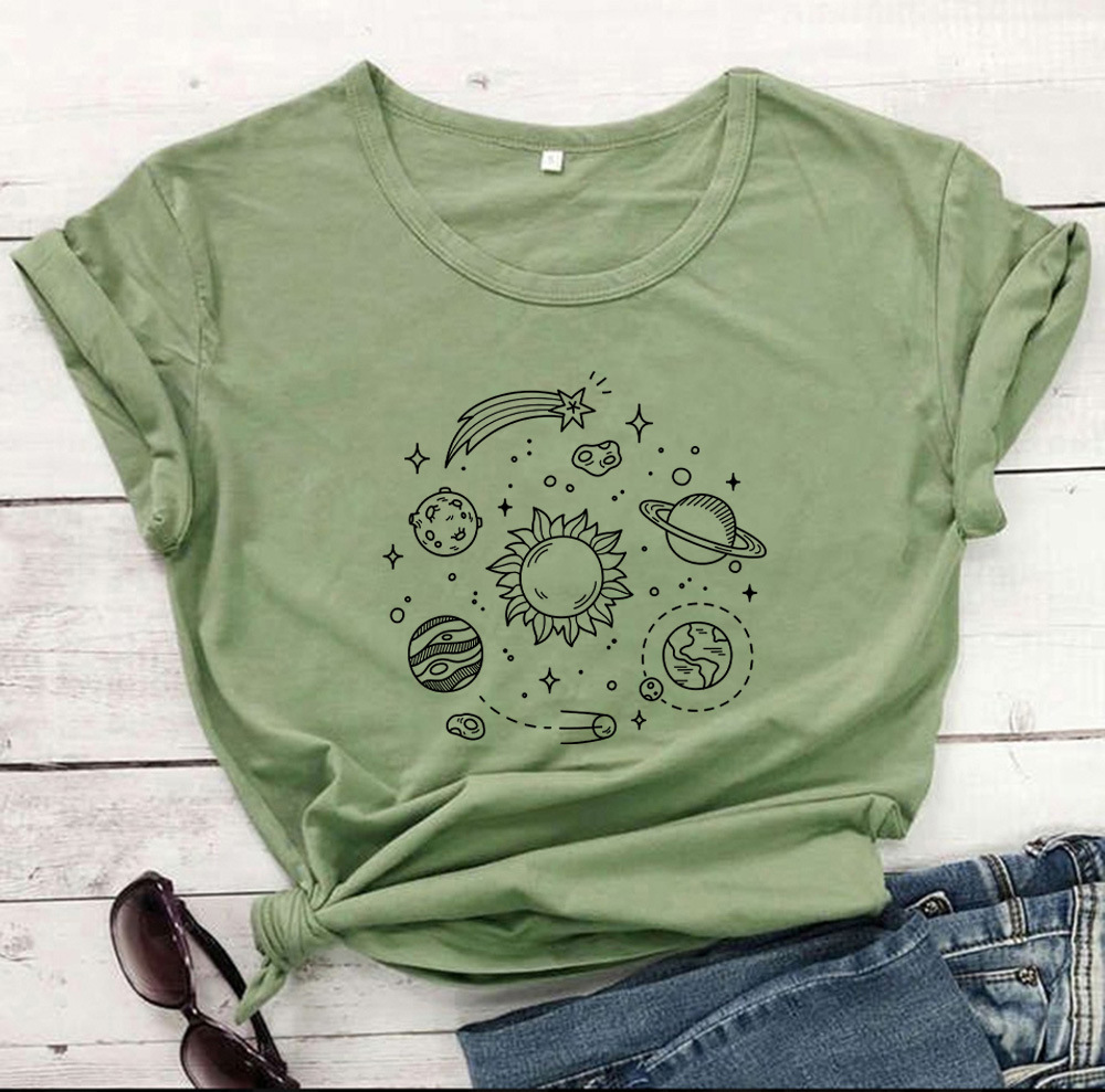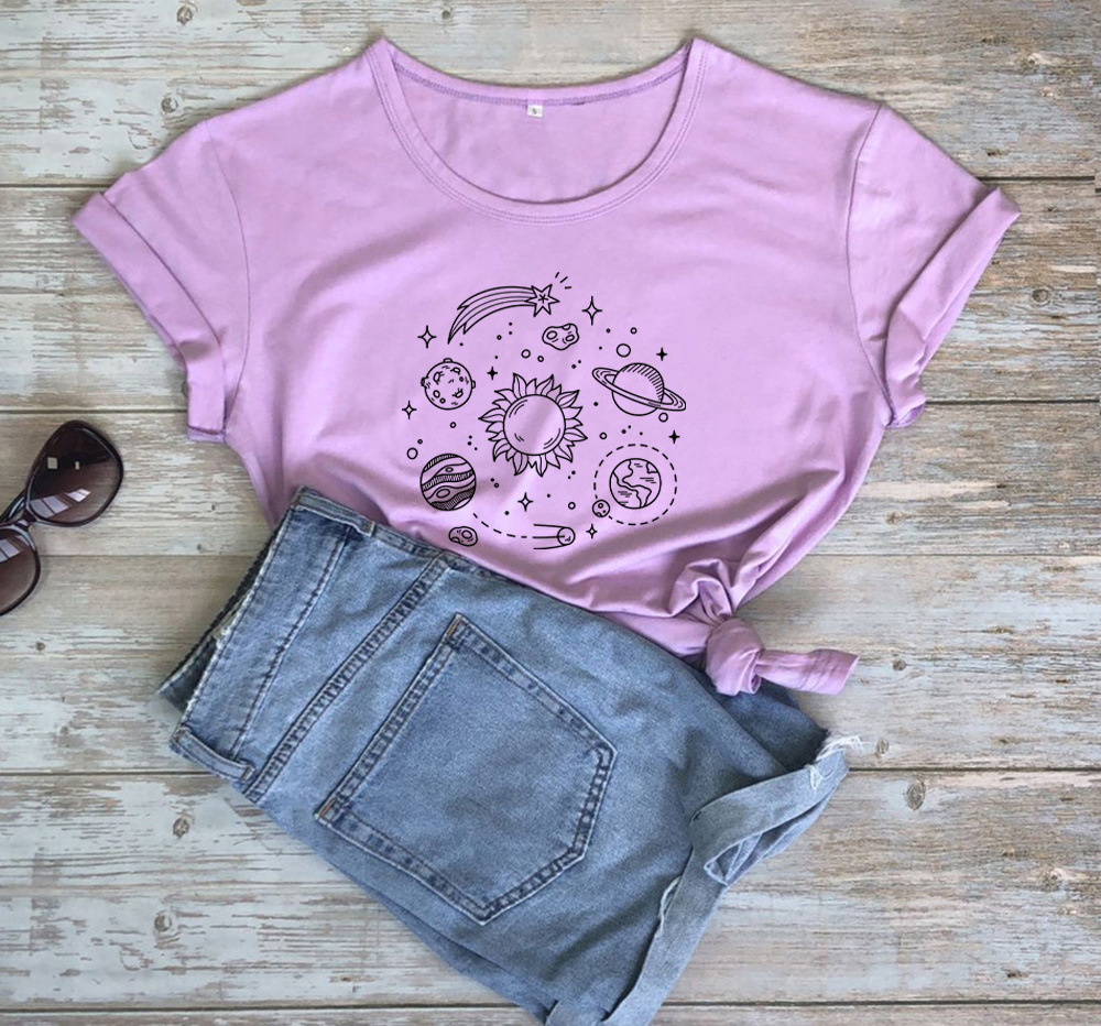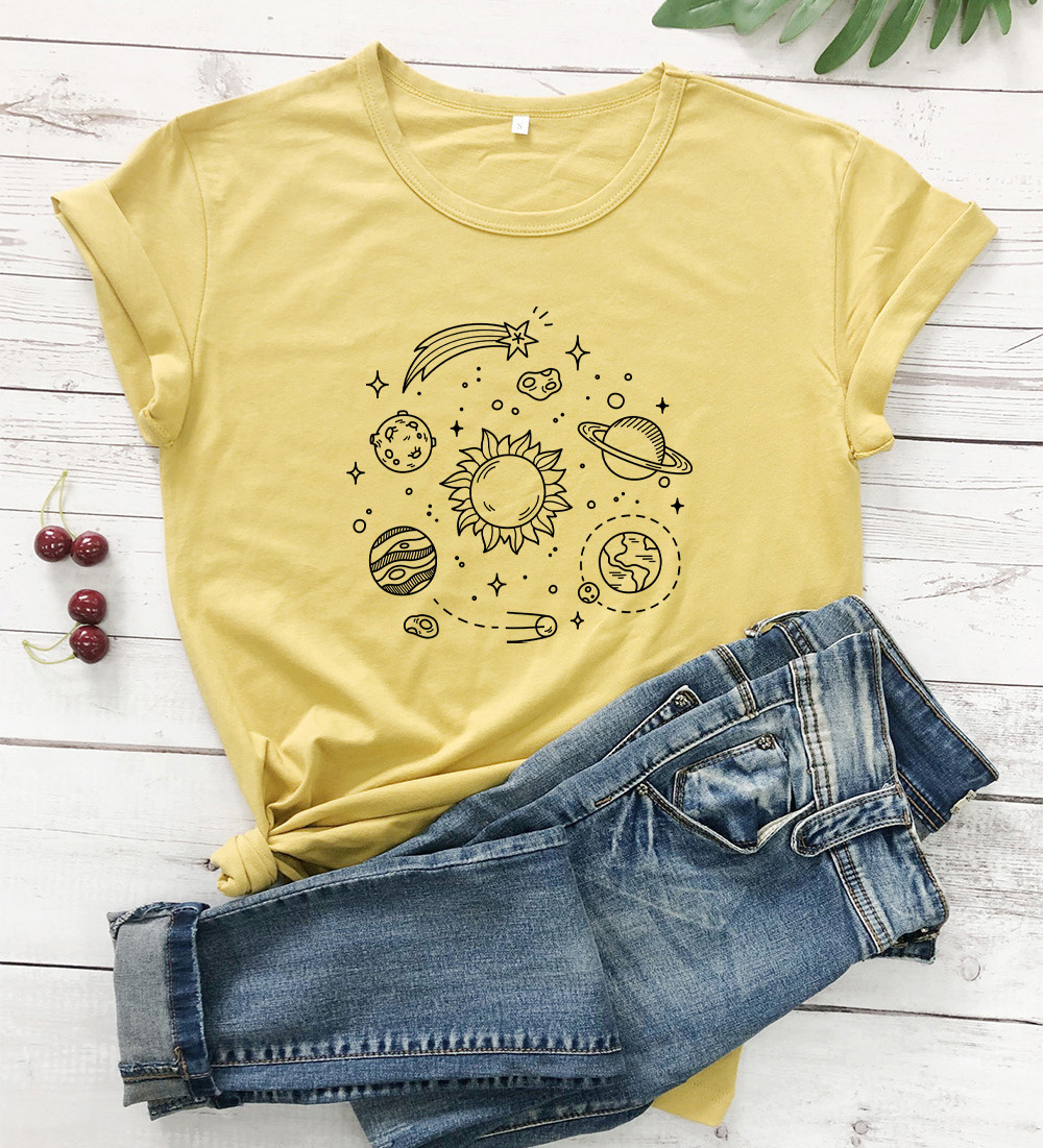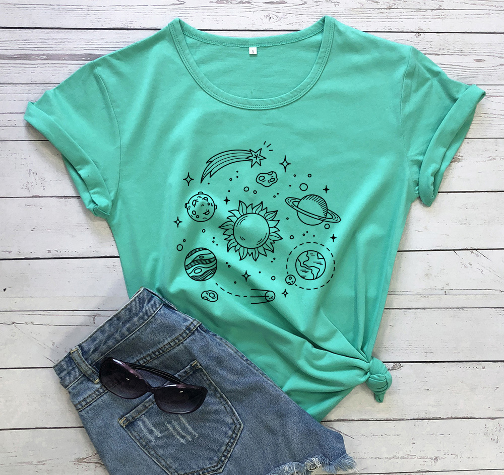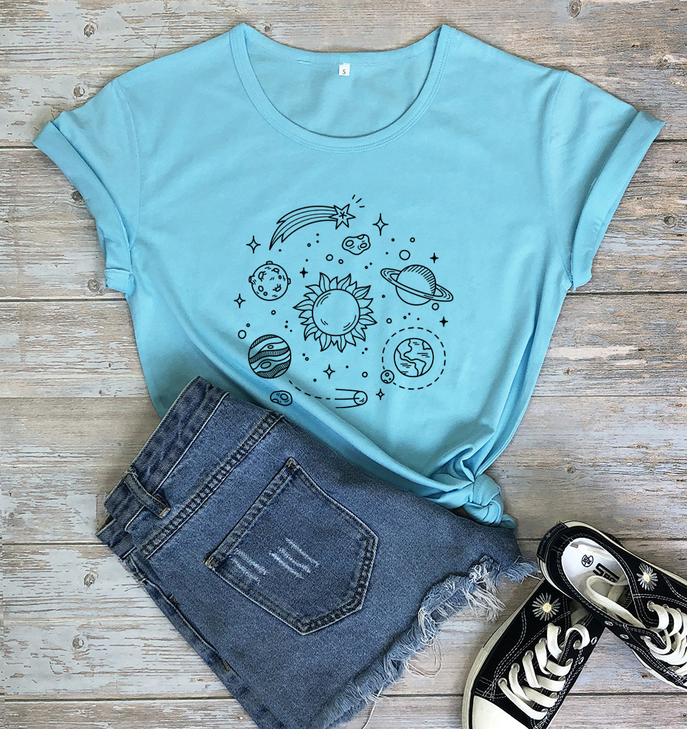 Футболка Космическая планета Новая мода с коротким рукавом и буквенным принтом