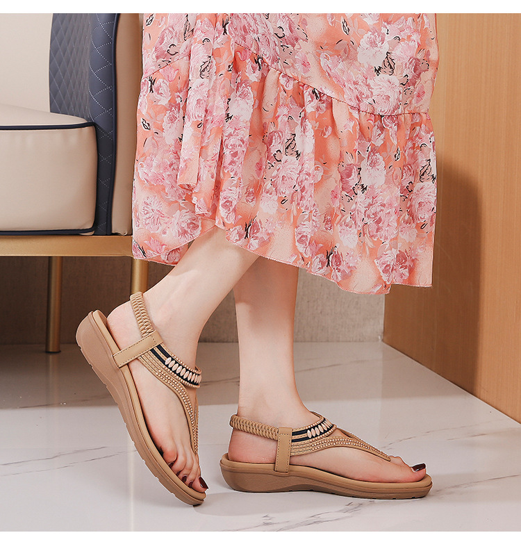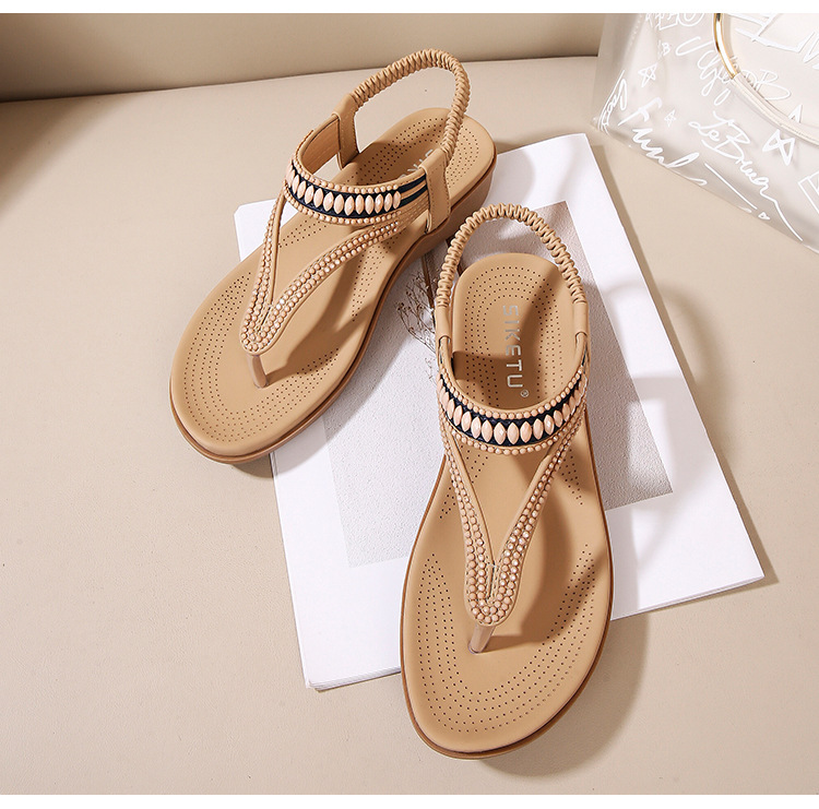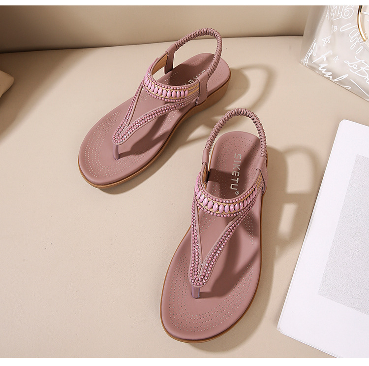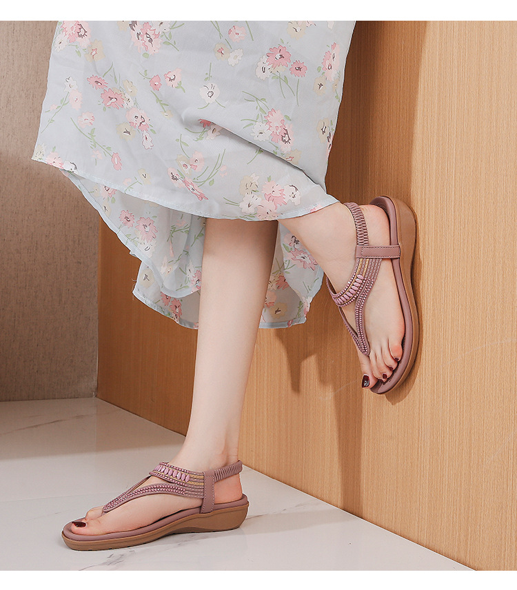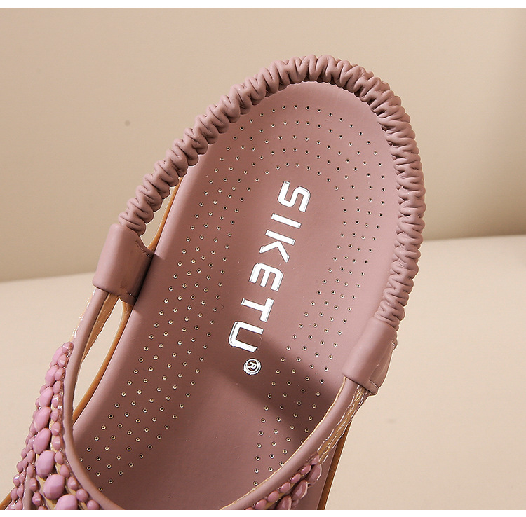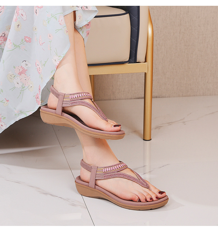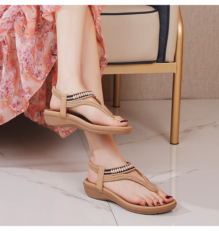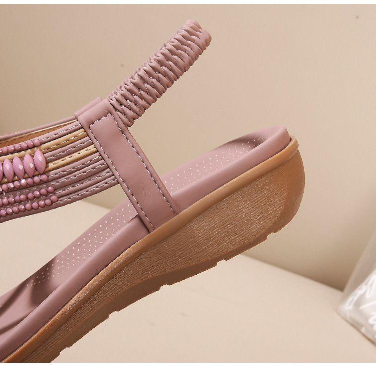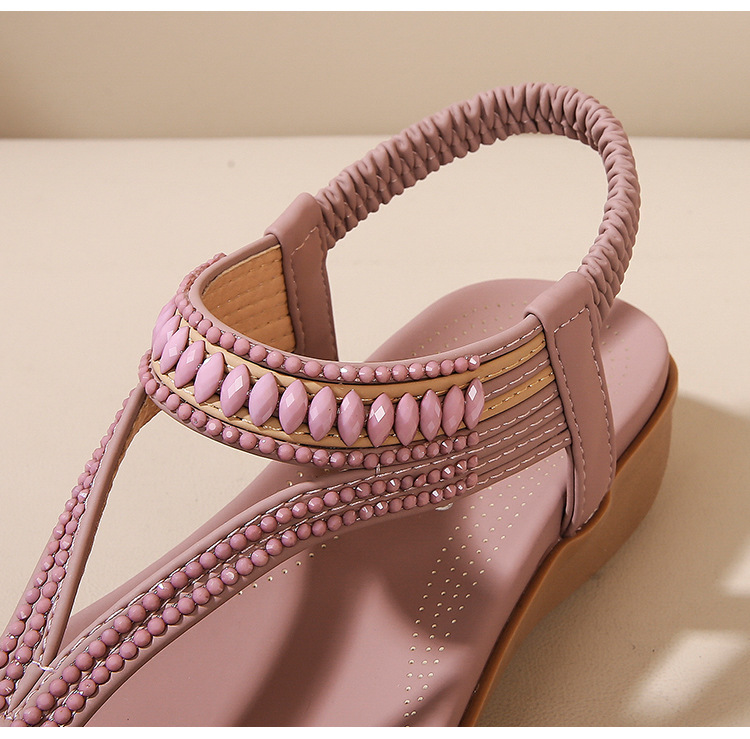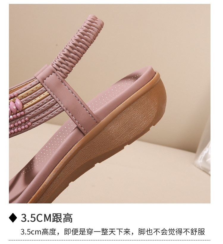 2025 летние новые европейские и американские женские сандалии с эластичными ремешками, бисером, мягкие, дышащие, легкие и удобные, женские туфли на танкетке большого размера.