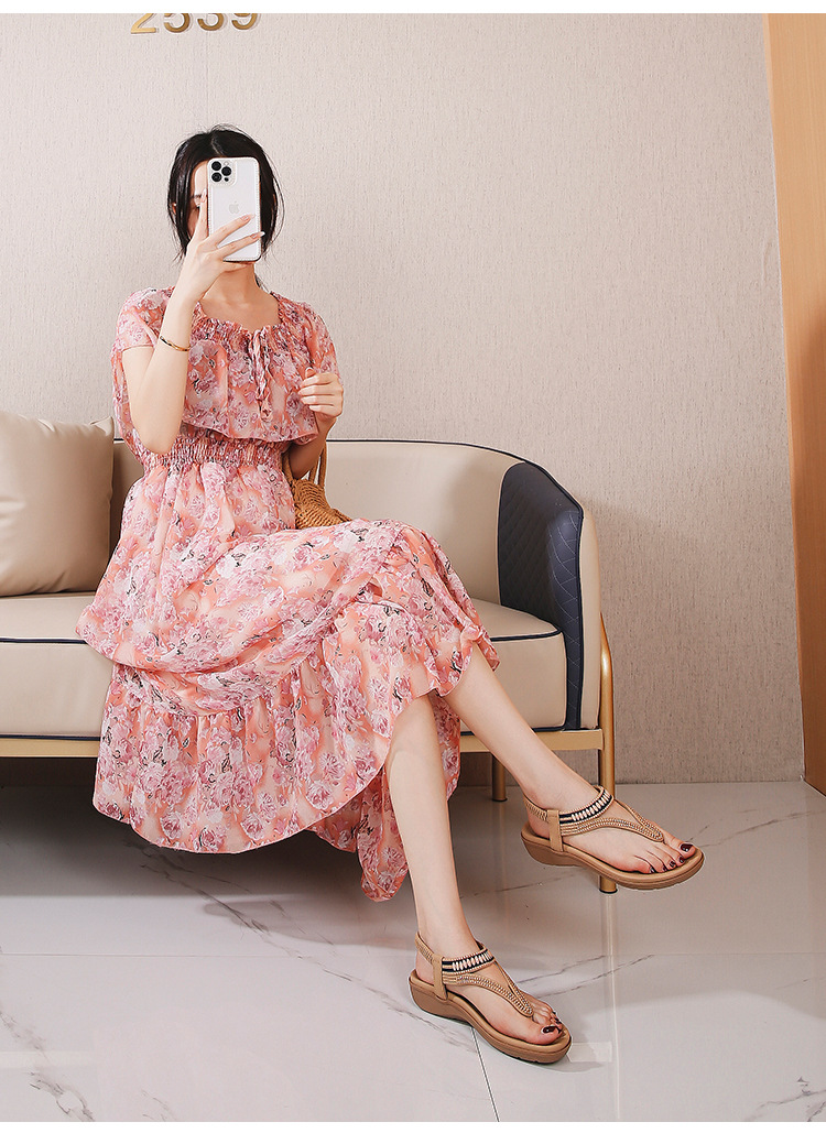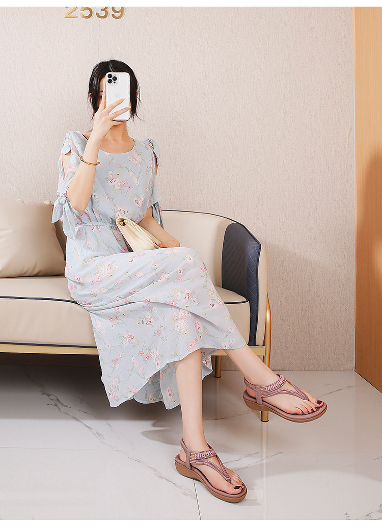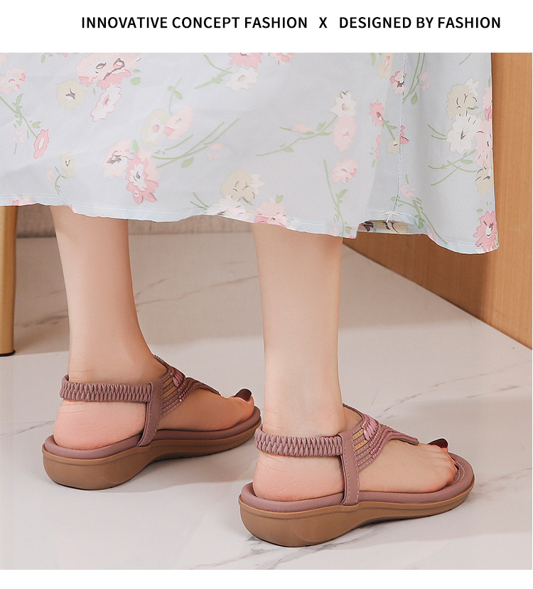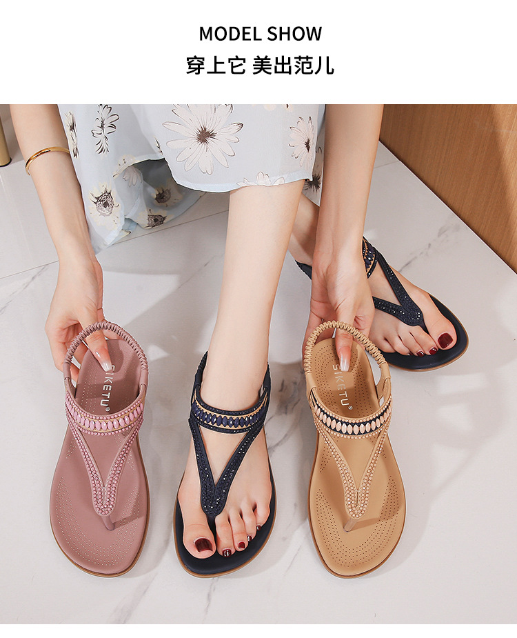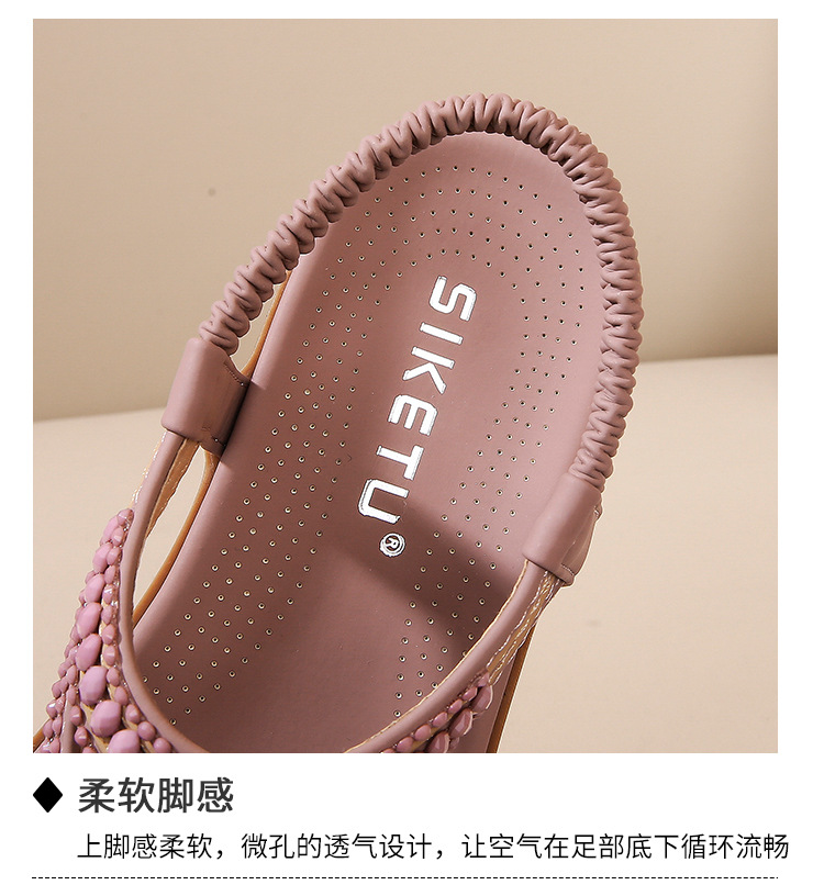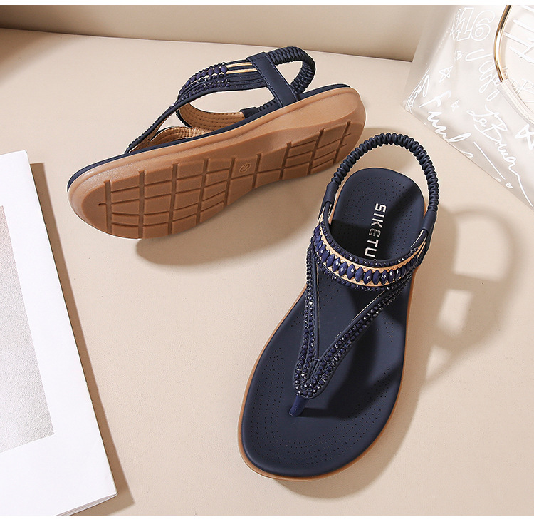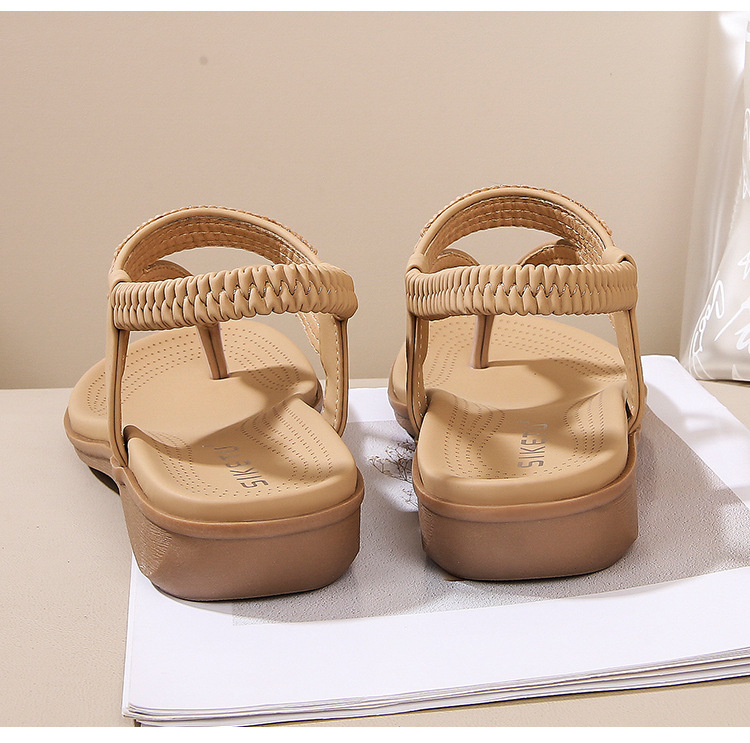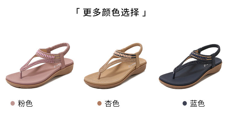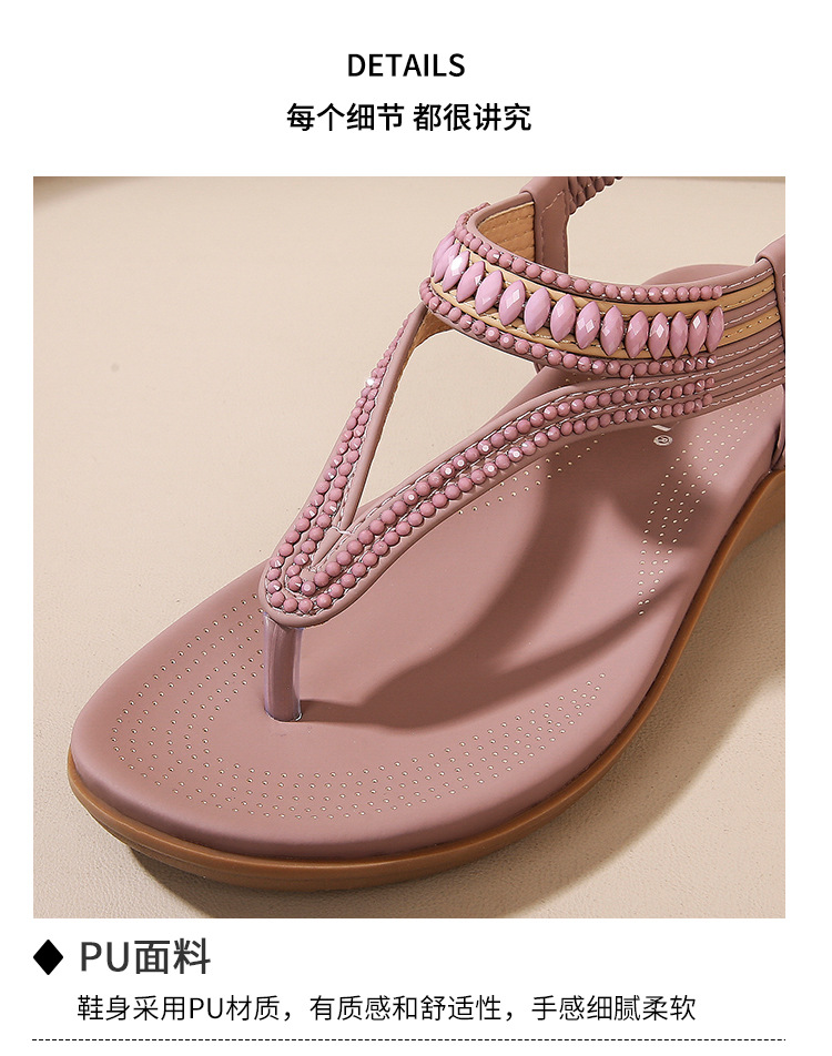 2025 летние новые европейские и американские женские сандалии с эластичными ремешками, бисером, мягкие, дышащие, легкие и удобные, женские туфли на танкетке большого размера.