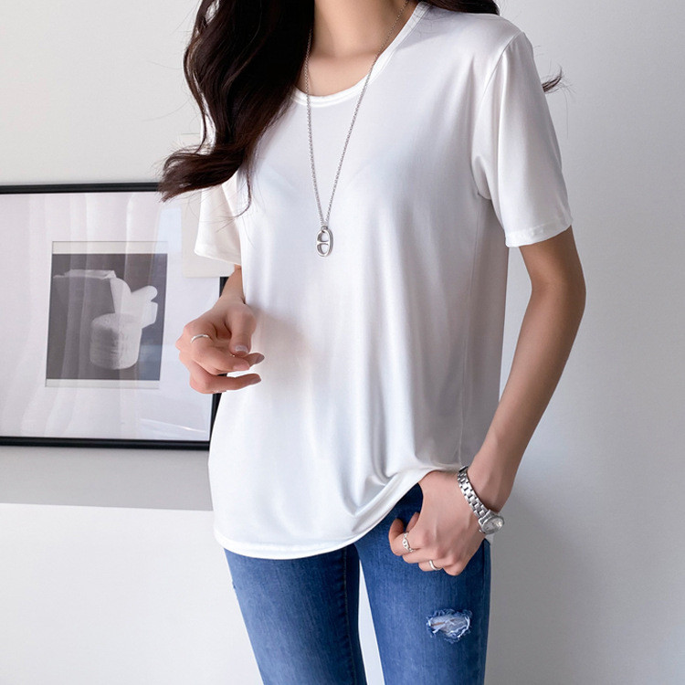 Летняя Новая женская Свободная футболка больших размеров из модала с короткими рукавами, куртка с круглым вырезом, большие размеры, 200 кг, плюс удобрения