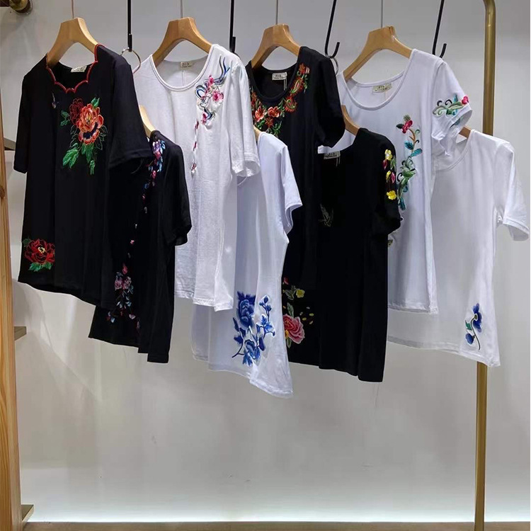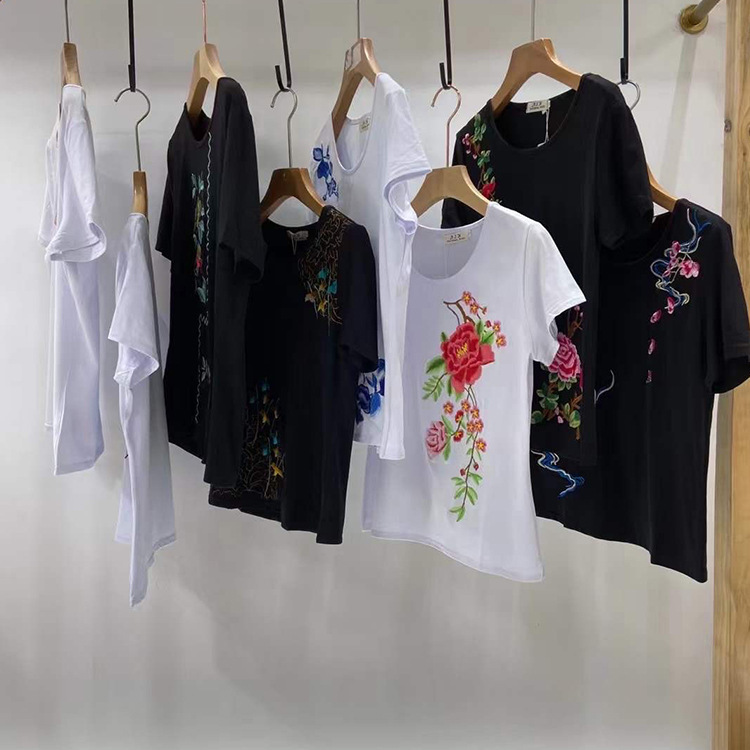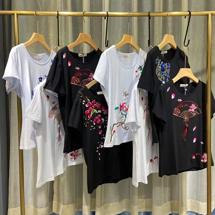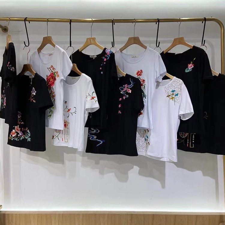 2023 летняя тяжелая промышленность вышивка T новая тяжелая промышленность с круглым вырезом Женская футболка с коротким рукавом брендовая скидка на поставку