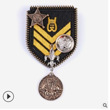 Красный крест галстук бабочка; Металлический значок; Знак штабного сержанта; Значок с пятиконечной звездой; Цепь; Значок Университета Дунъянь