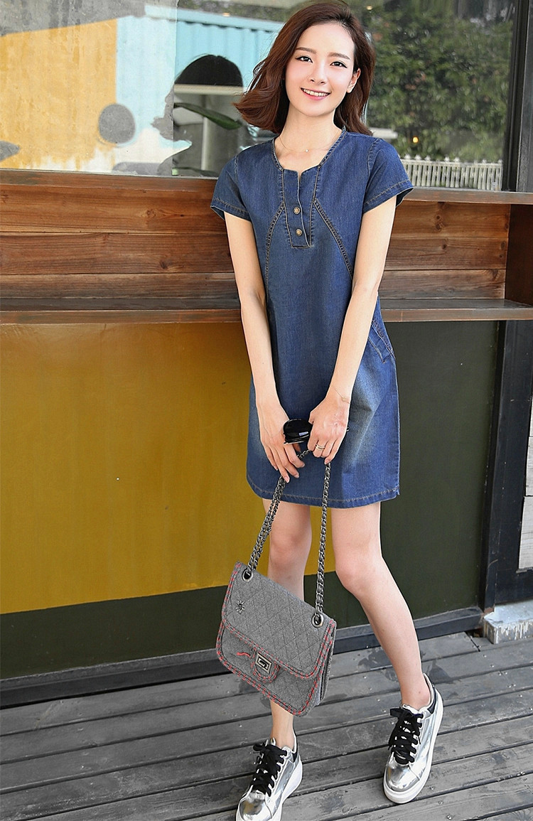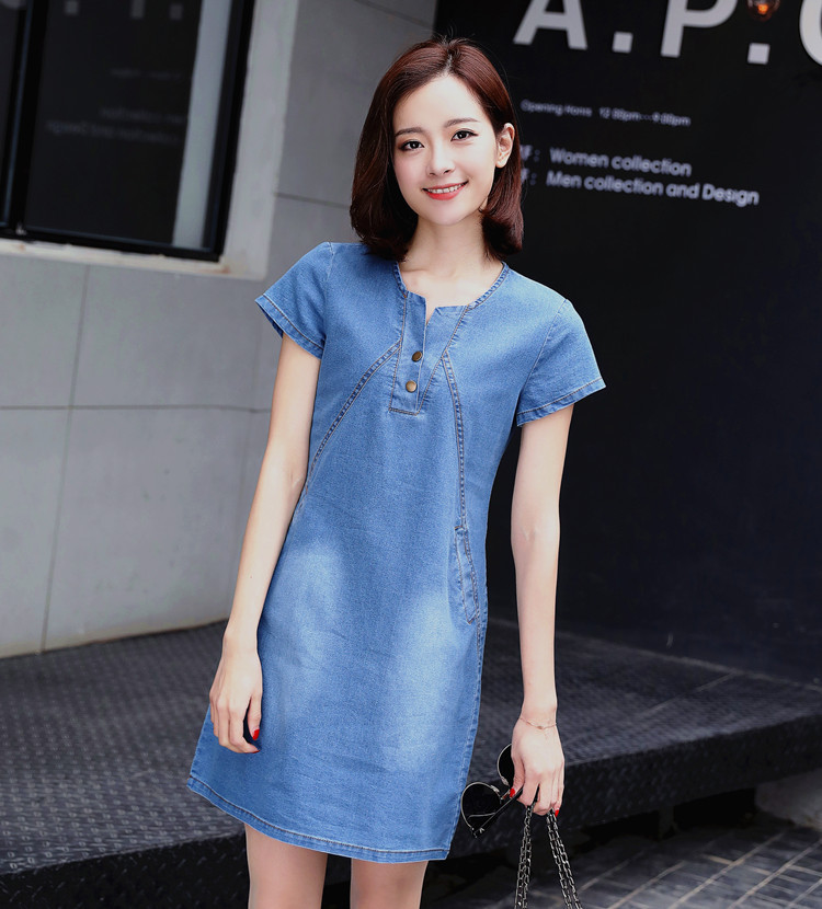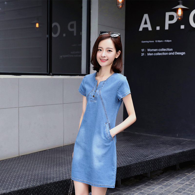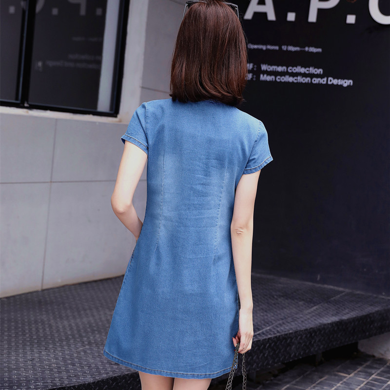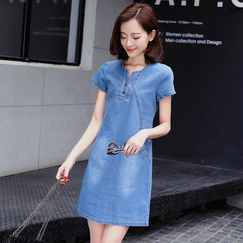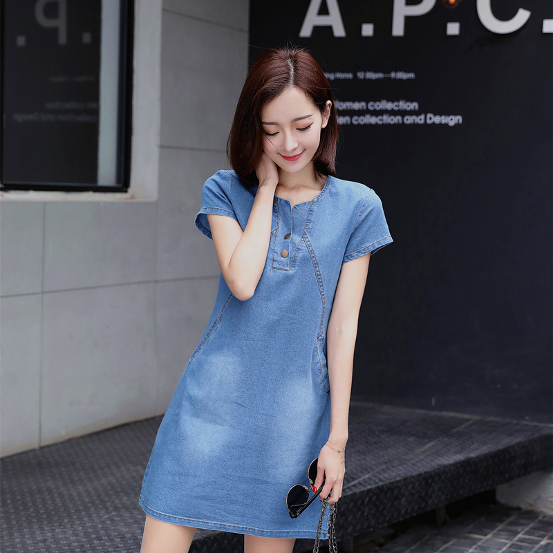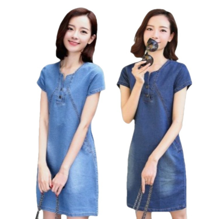 Приталенное джинсовое платье женское весенне-летнее Новое корейское платье больших размеров, облегающая свободная джинсовая юбка, юбка A- Line
