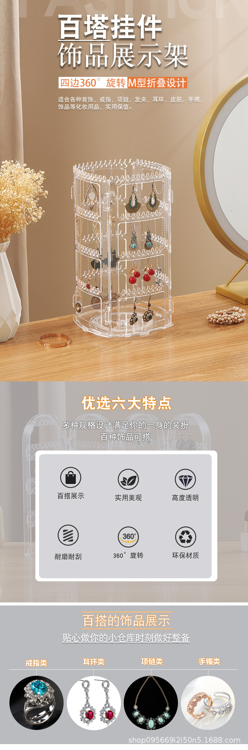 Серьги Шкатулка для драгоценностей Стеллаж Вращающаяся многослойная прозрачная акриловая Серьга большой емкости Ушные гвоздики Стойка для ожерелья