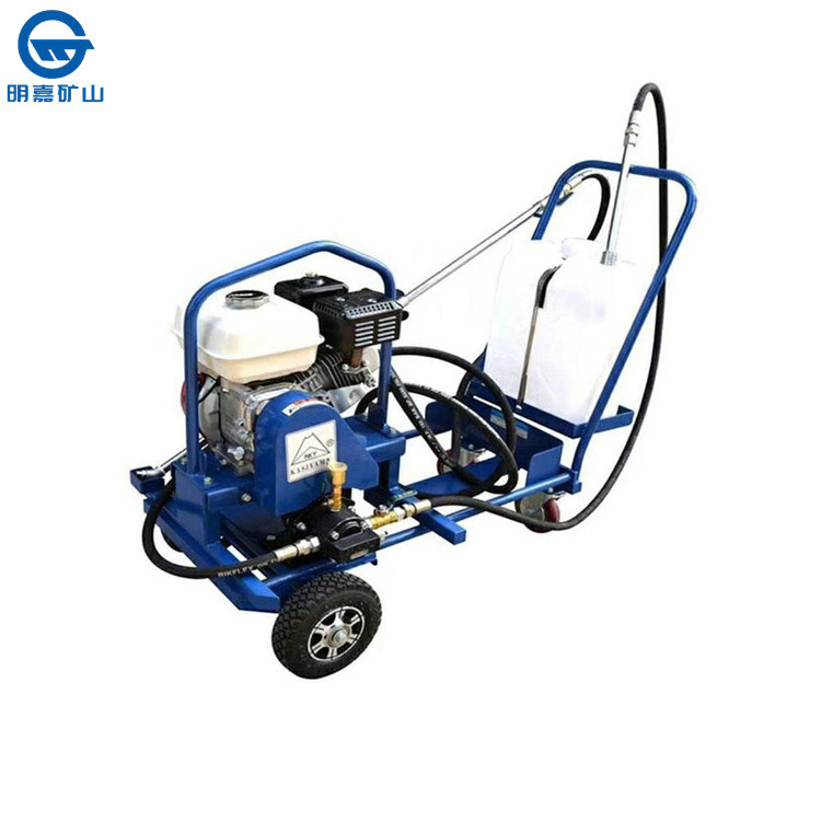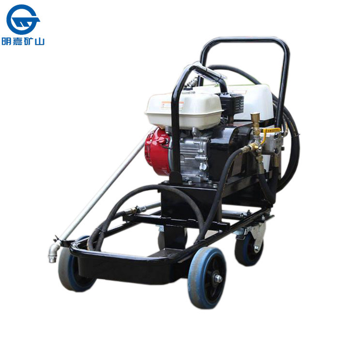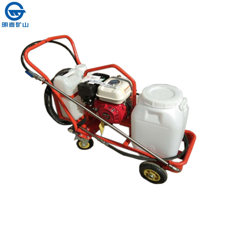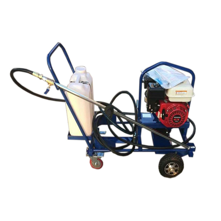 主要由汽油发动机作为动力源,通过特种泵送和液压无气原理,把软管直接插入到乳化沥青桶里,乳化沥青就会自动吸入软管,然后通过喷洒管上的喷嘴把乳化沥青均匀地洒到需要修补路面病害的地方。设备实用,操作简便,是沥青道路维护常用的设备。