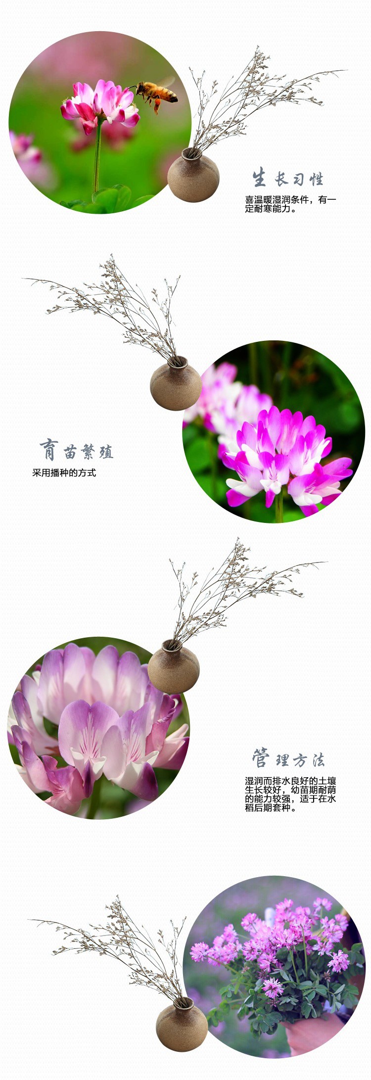 Красный и белый цветок трехлистные семена Four Seasons зеленый газон животноводство молоко Вика Легкая жизнь Фруктовый сад Зеленый навоз холодоустойчивые семена трав
