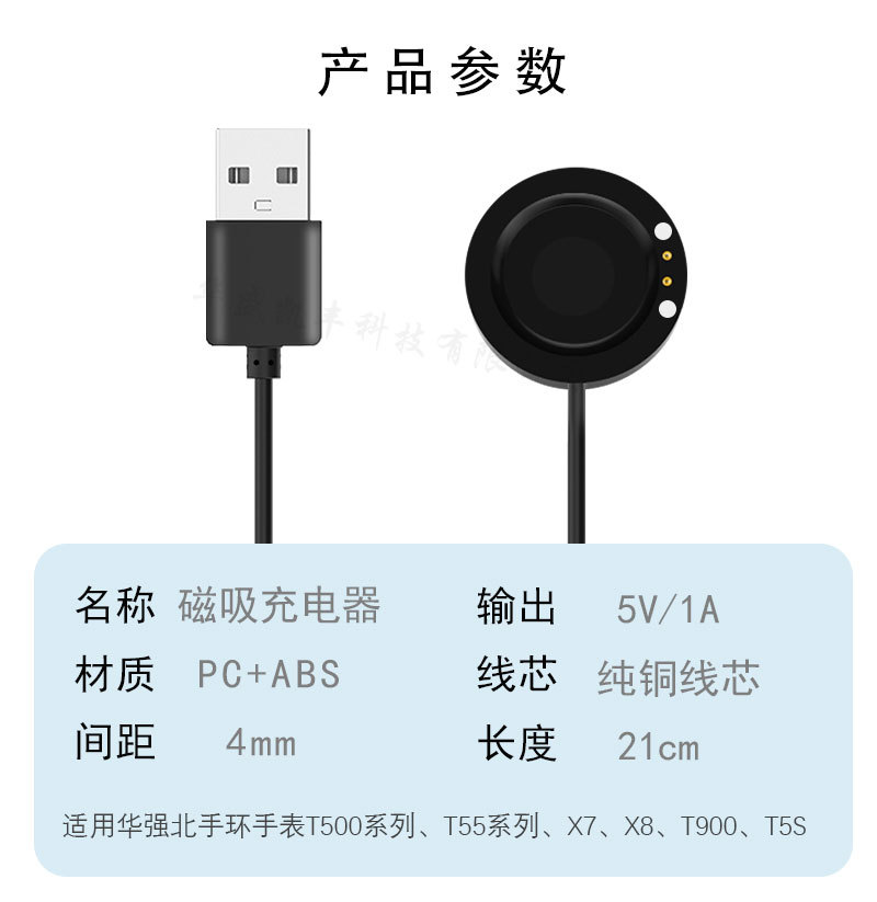 Подходит для зарядного устройства Huaqiangbei T500, умных часов X7, 2-контактный контакт, шаг 4 мм, зарядный кабель T55 + Pro