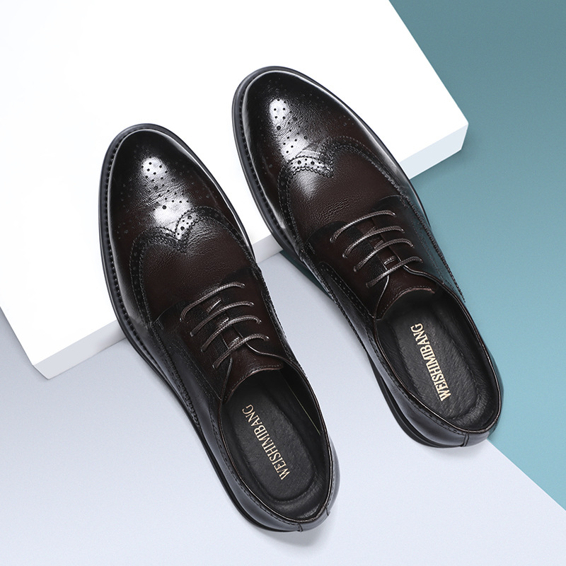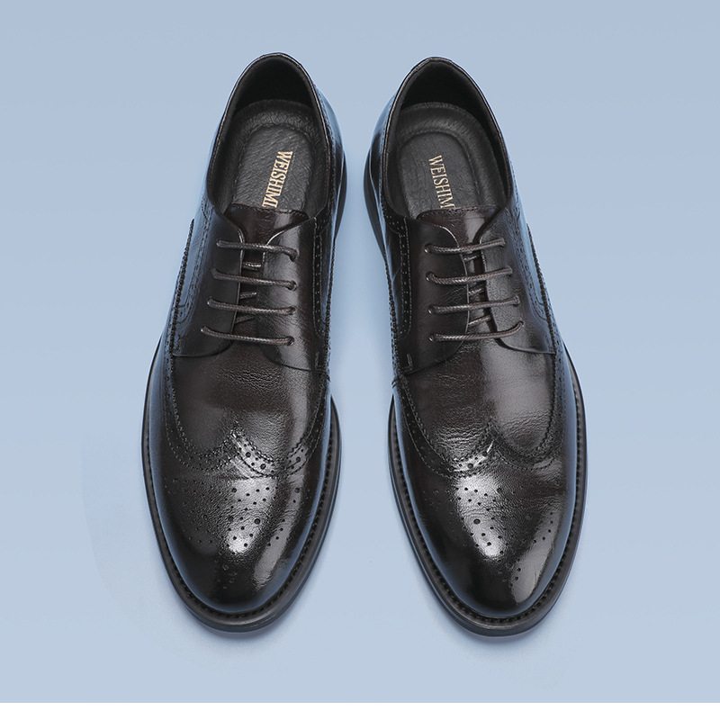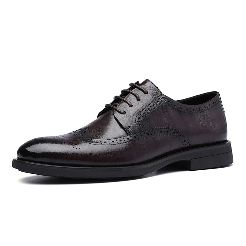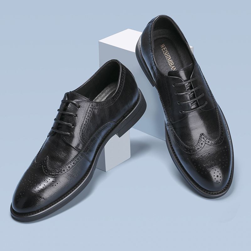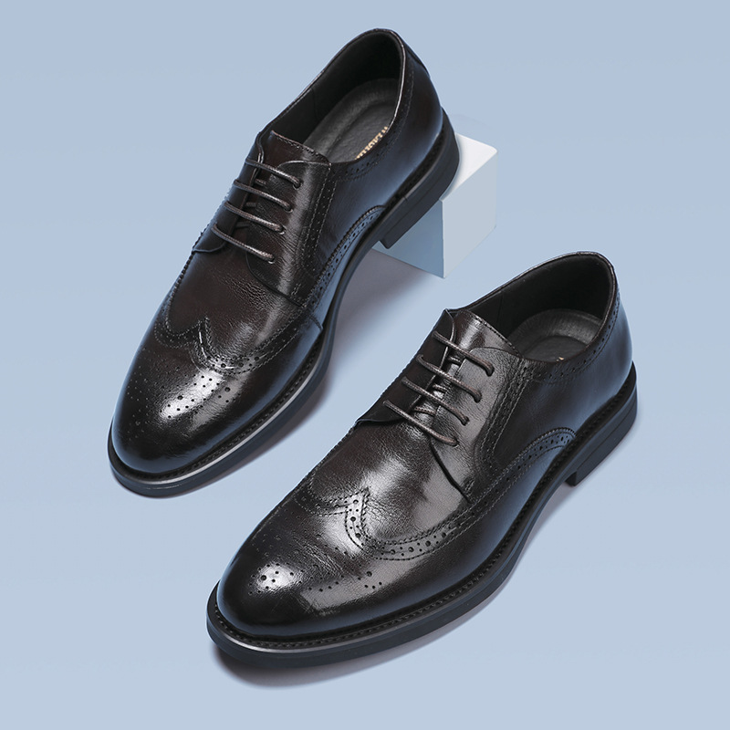 В наличии, новая модель 2024 года, мужские черные деловые туфли-броги из натуральной кожи (первый слой), британский повседневный стиль, низкие.