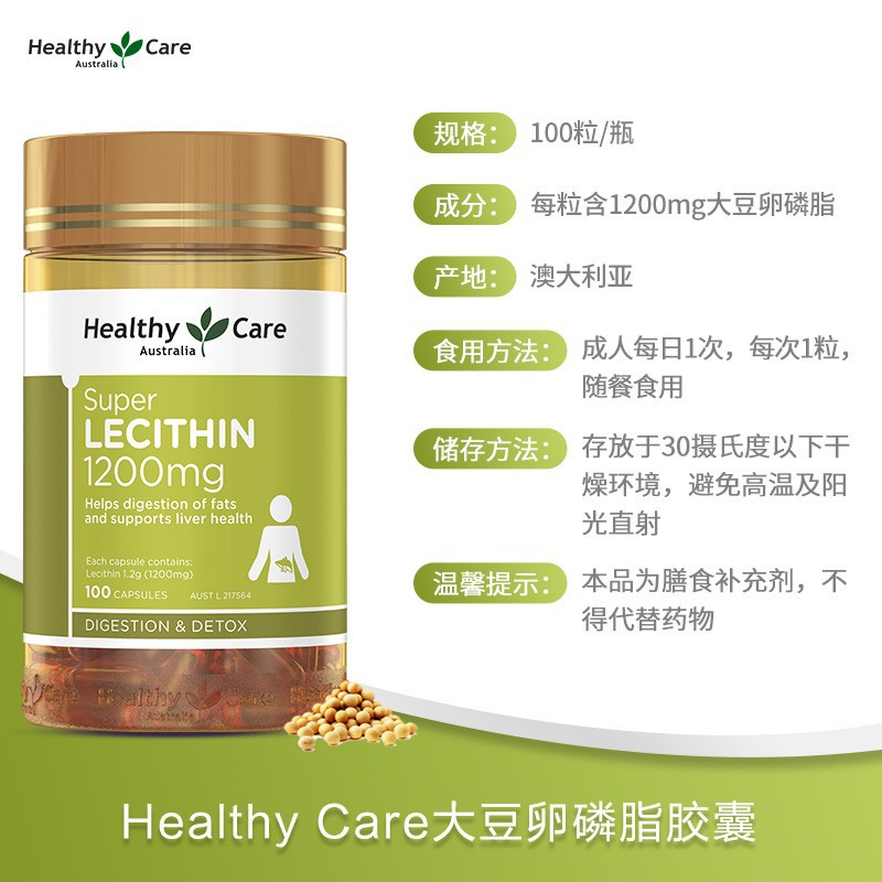 Здоровый уход Австралийский лецитин сои мягкая капсула ХК мягкий лецитин 1200мг 100 капсул Австралия