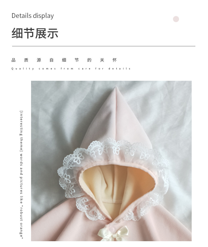 Детский флисовый плащ в корейском стиле, осенне-зимнее пальто для девочки, с кружевной отделкой, капюшоном, теплый флисовый плащ
