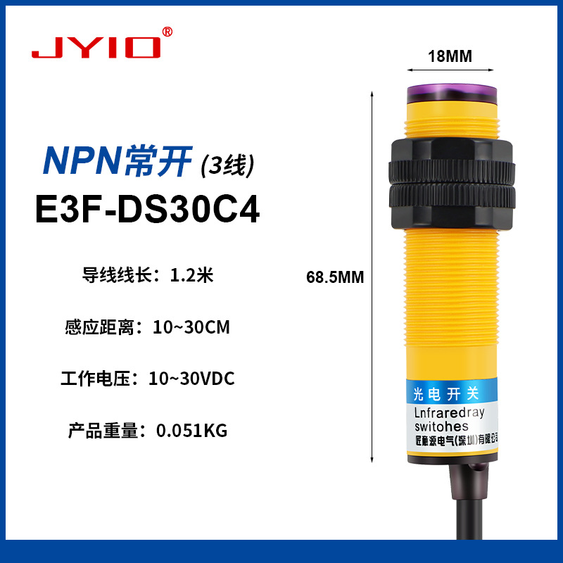 Инфракрасный индукционный фотоэлектрический переключатель E3F-DS30C4 Датчик диффузного отражения NPN нормально открытый трехпроводной Регулируемый 24 В
