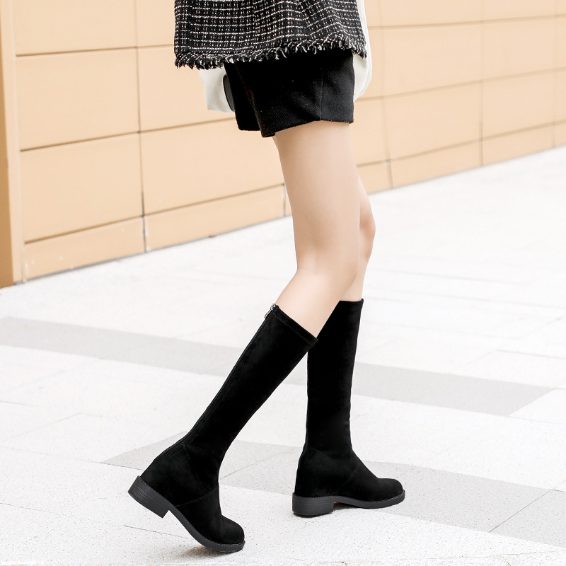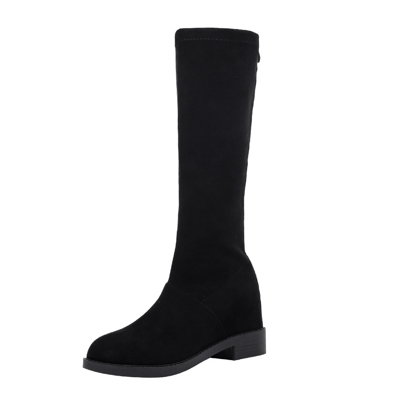Женские длинные сапоги, но до колена, осень/зима 2022, новый стиль, маленькие эластичные сапоги с увеличением внутренней высоты, тонкие сапоги со средней трубкой и молнией сзади
