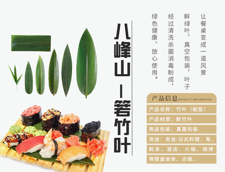 Японское украшение для подачи суши и сашими: бамбуковые листья, листья риса, украшение для блюд, вакуумная упаковка, бамбуковые декорации, бамбуковое дерево, бамбуковая ткань, бамбук.