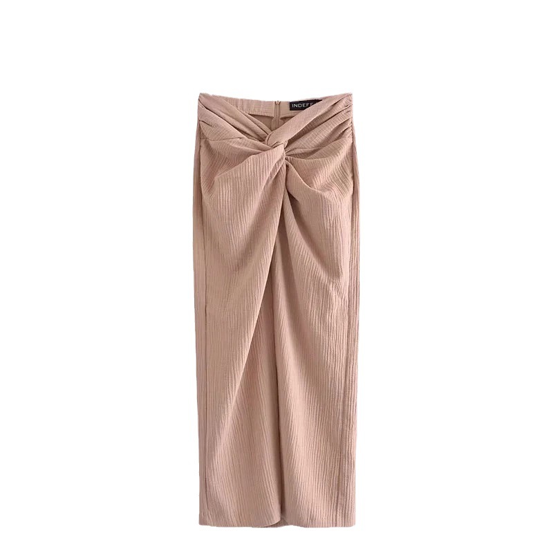 Новая женская плиссированная юбка с высокой талией и принтом, текстурированная юбка, повседневная элегантная хлопковая юбка в стиле ретро с марлевым узлом