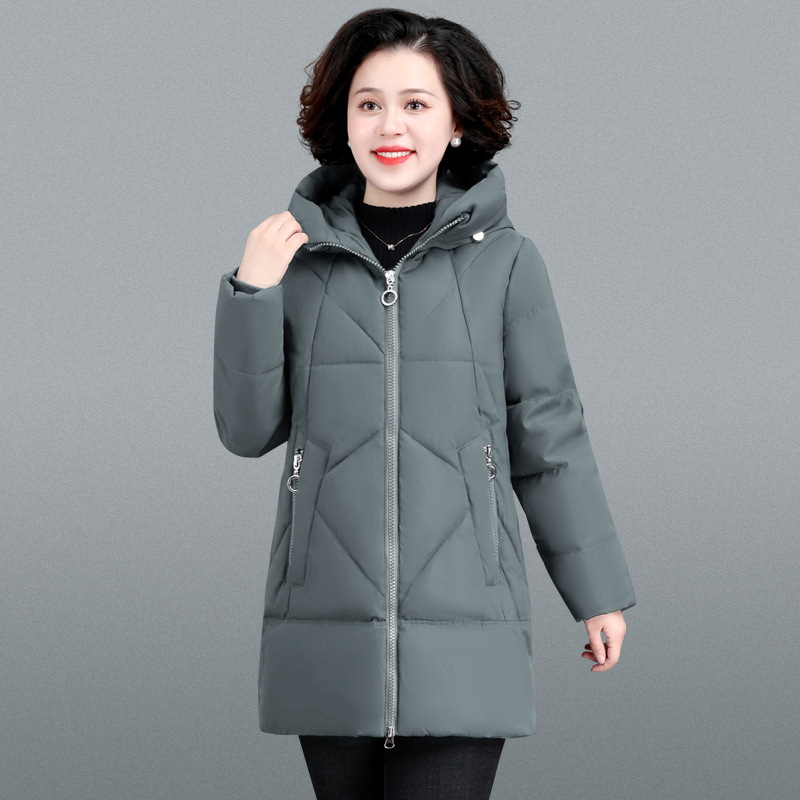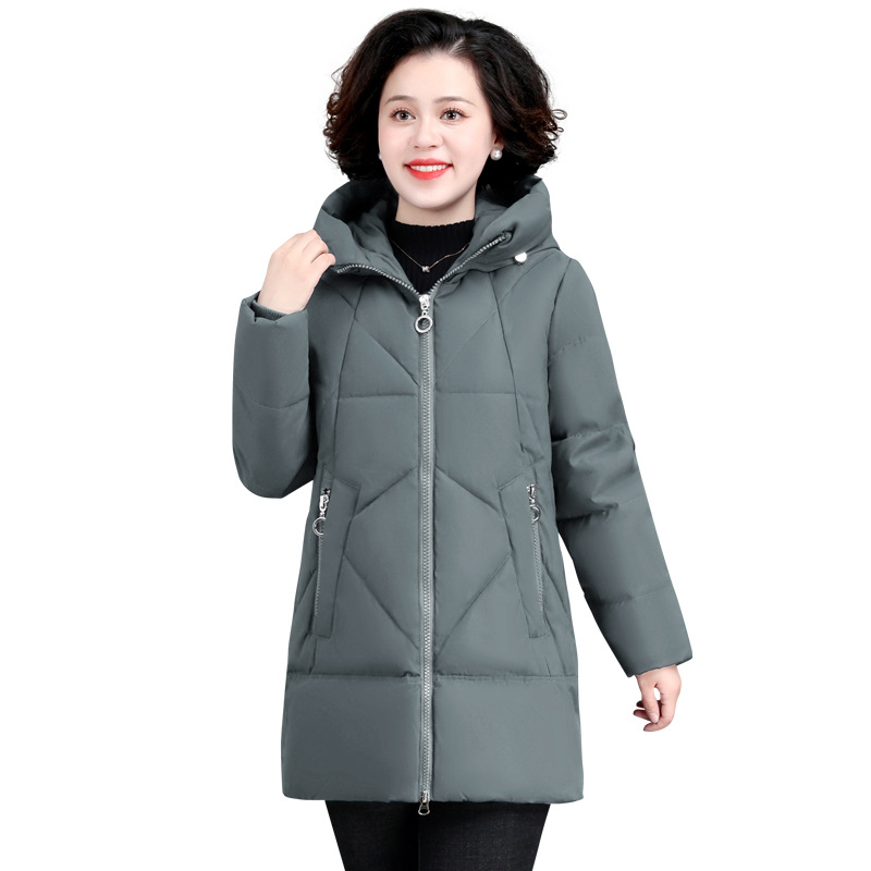 Женское пуховое пальто для мам, зима 2025, большой размер, средней длины, с капюшоном, стеганая куртка из хлопка, женская хлопковая одежда больших размеров.