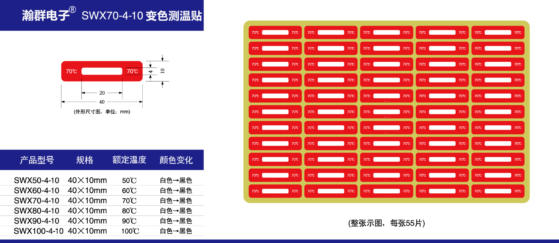 2.特殊需要可根据客户要求制作,如制作不同额定温度、不同超温颜色、不同规格的变色测温贴片。