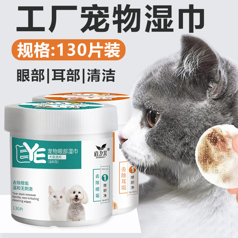 Влажные салфетки для животных, 130 штук/упаковка, универсальные для собак и кошек, для очистки глаз кошек и ушей собак, оптом