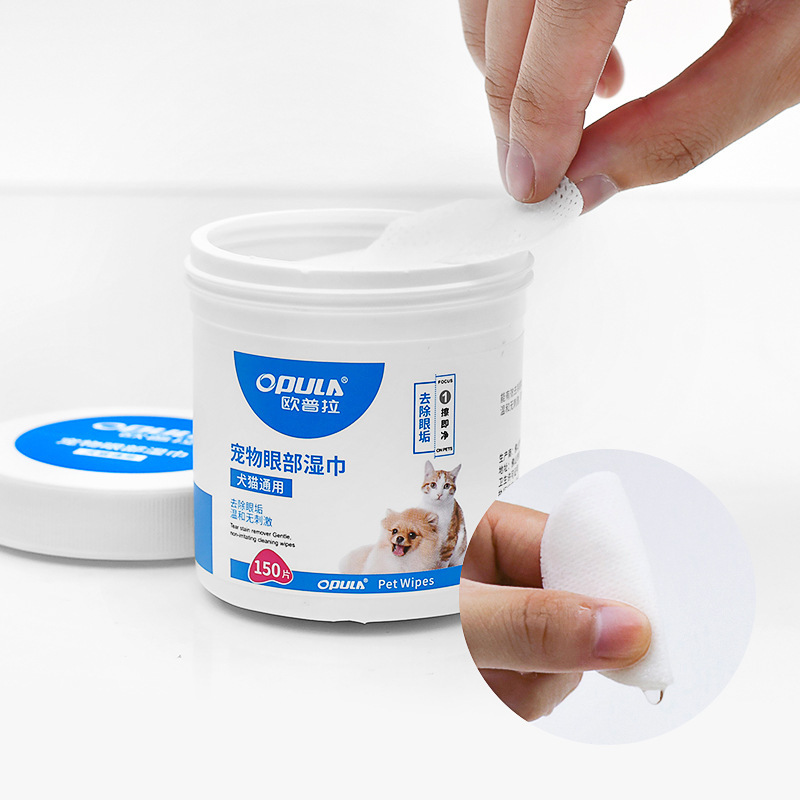 Салфетки для очищения глаз домашних животных OPULA, 150 штук, в сетке, для кошек и собак, от слезных пятен