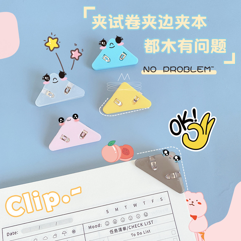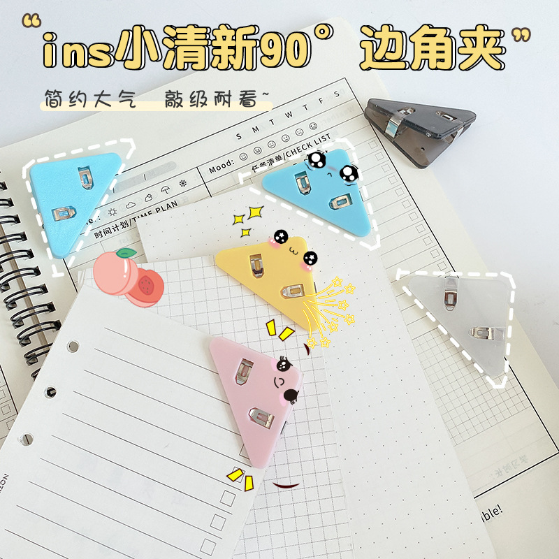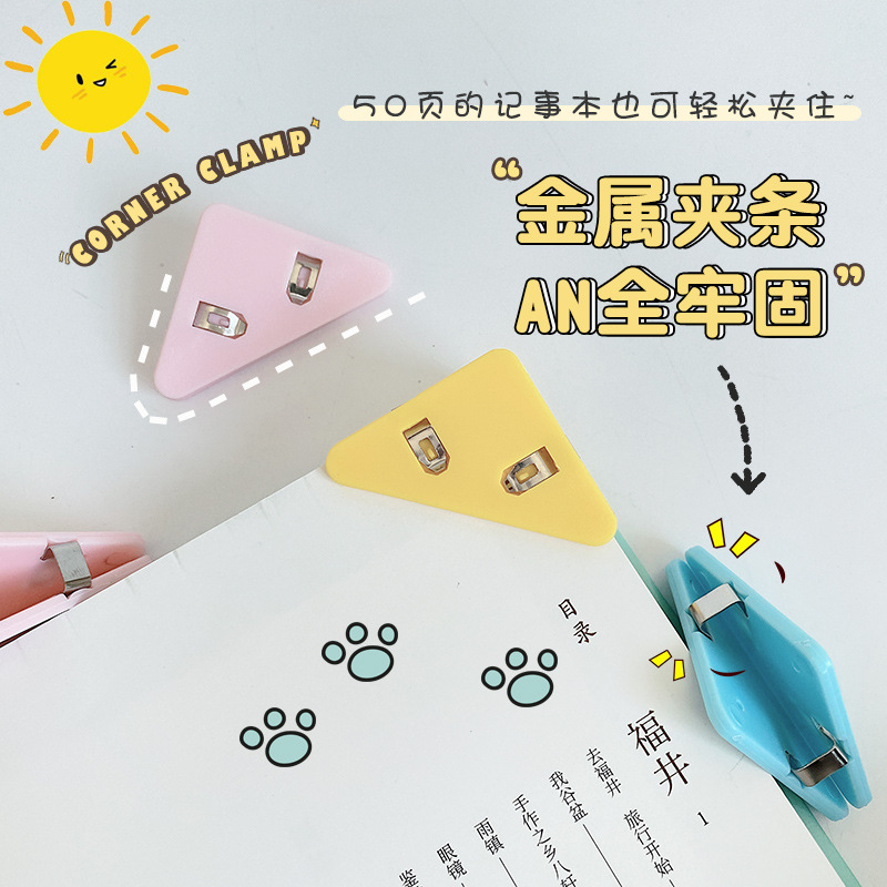 Прозрачный треугольный зажим, красочный офисный канцелярский уголочный зажим, защитный зажим для книг, зажим для счетов, треугольный пластиковый зажим