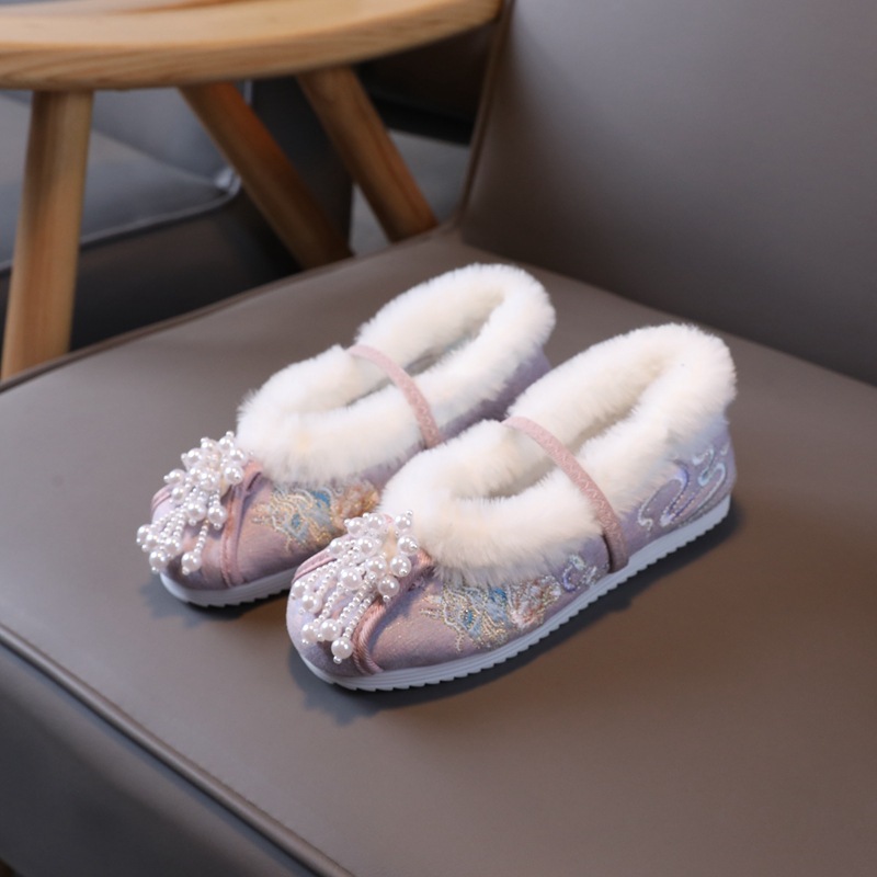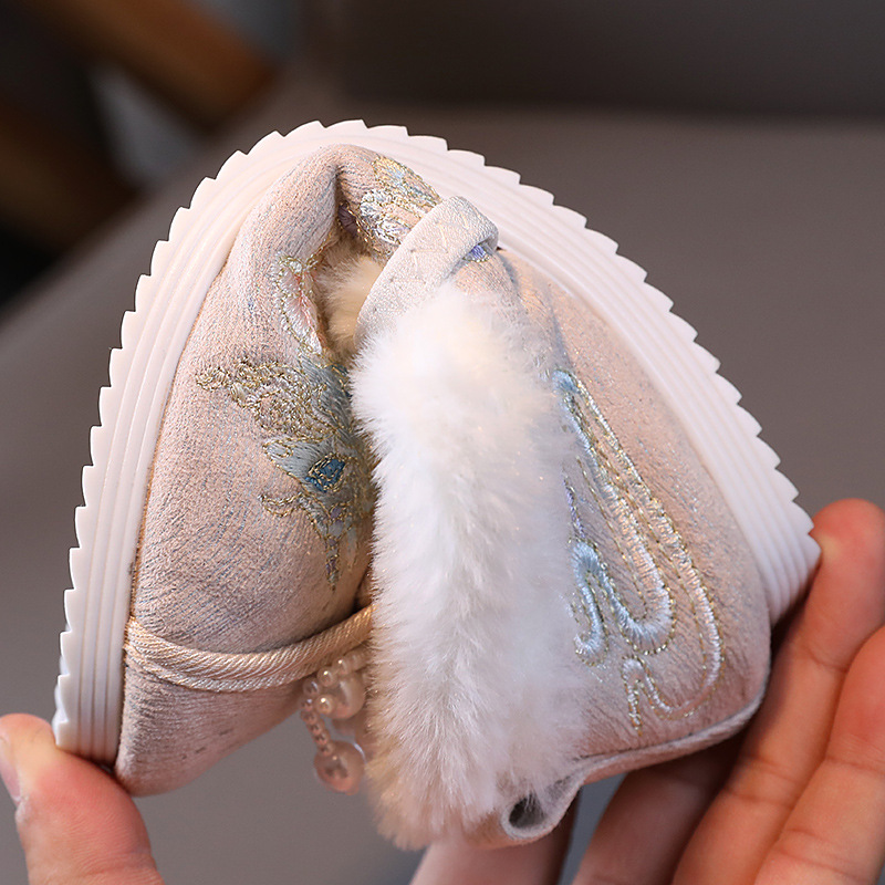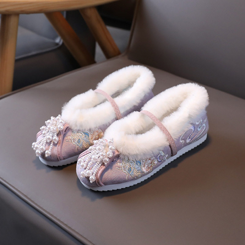 Xingguang, зимняя обувь Hanfu на флисовой подкладке, обувь из этнического хлопка в старинном стиле для девочек, детская обувь с вышивкой, старая Пекинская Тканевая обувь