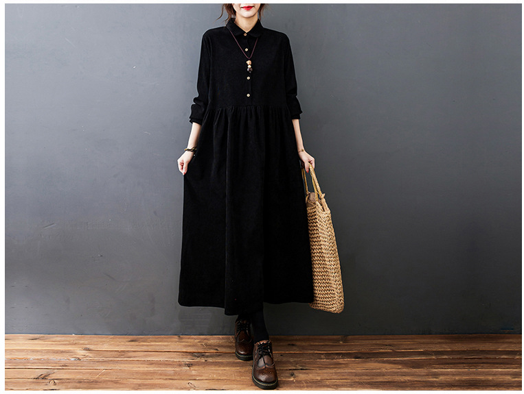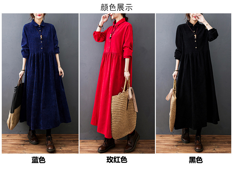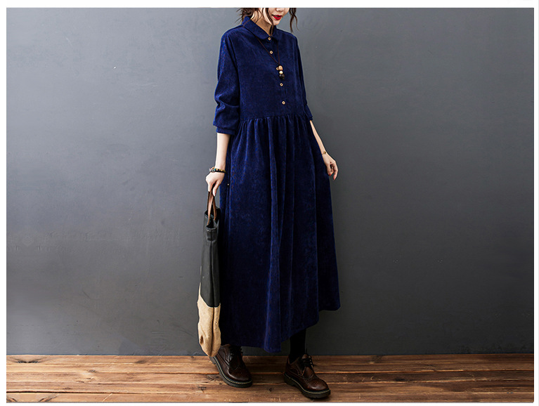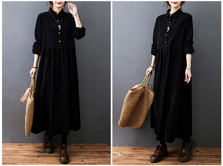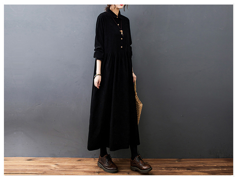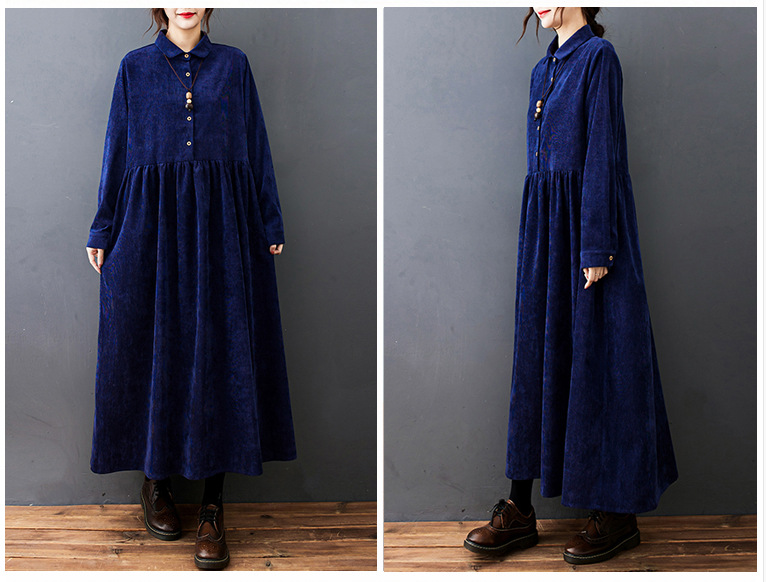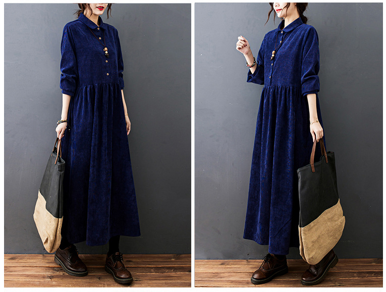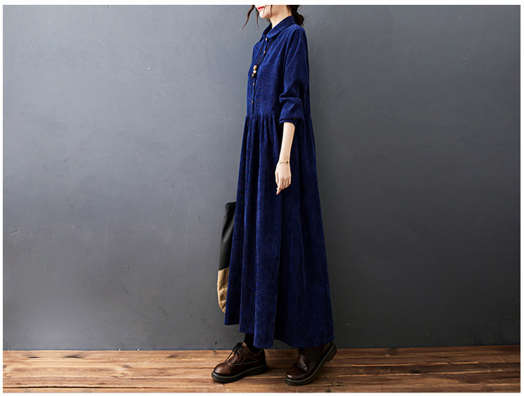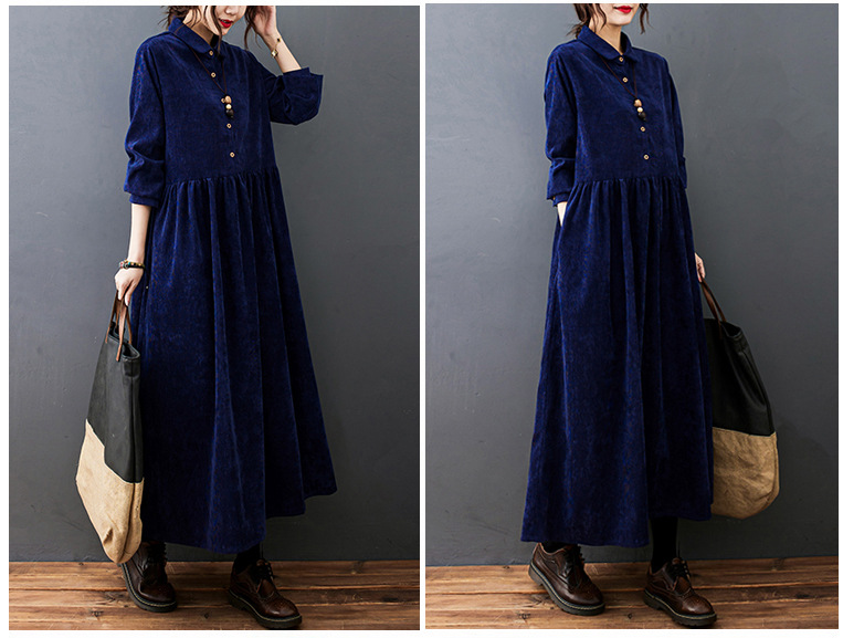 Новая осенняя одежда 2025 года, стильная женская одежда больших размеров, повседневное теплое длинное платье из вельвета с лацканами и широким подолом для женщин