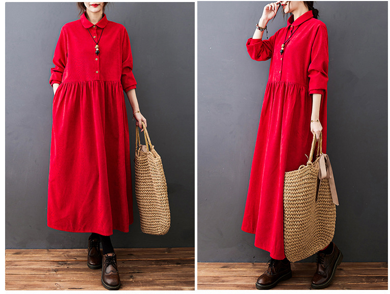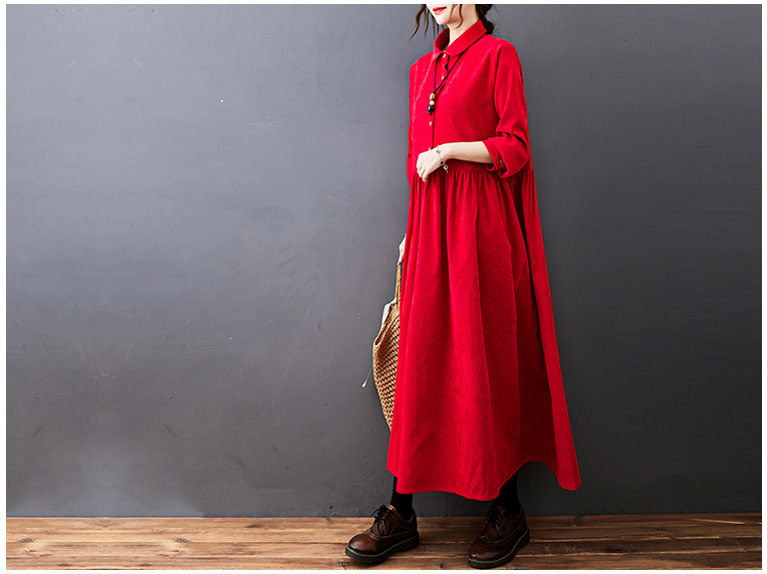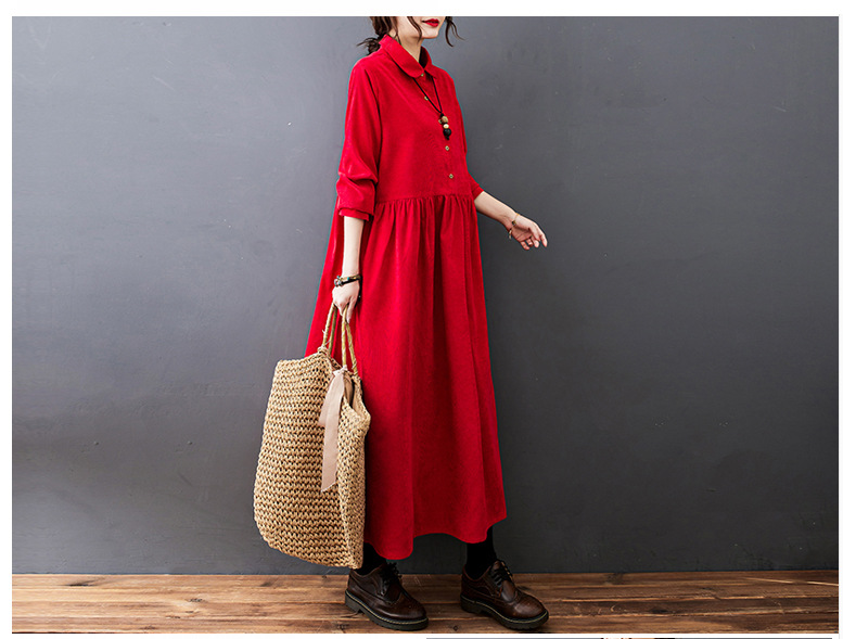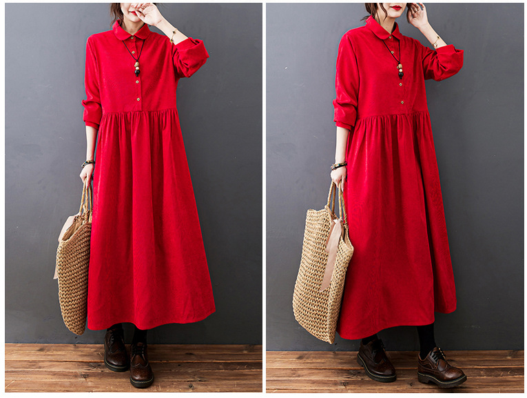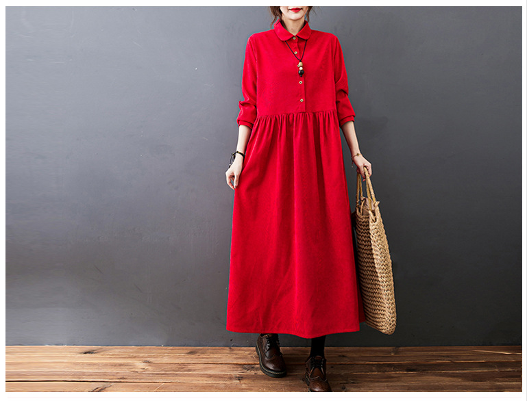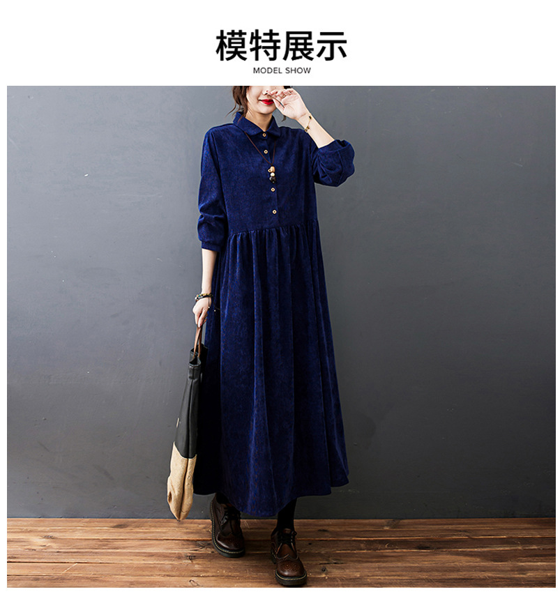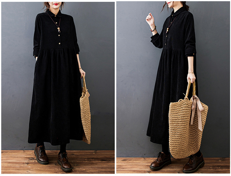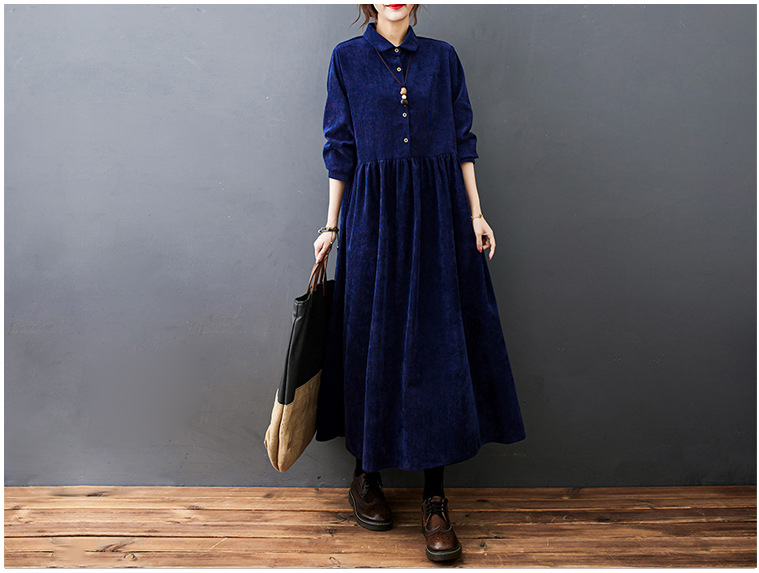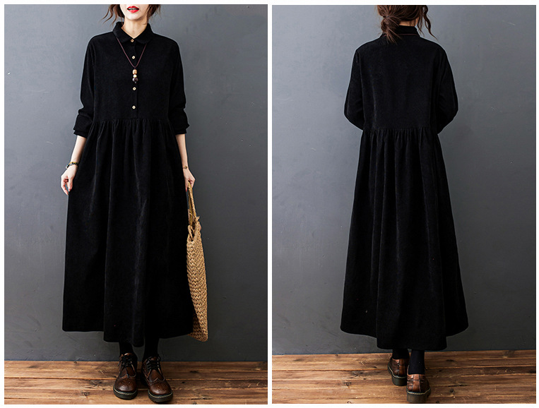 Новая осенняя одежда 2025 года, стильная женская одежда больших размеров, повседневное теплое длинное платье из вельвета с лацканами и широким подолом для женщин