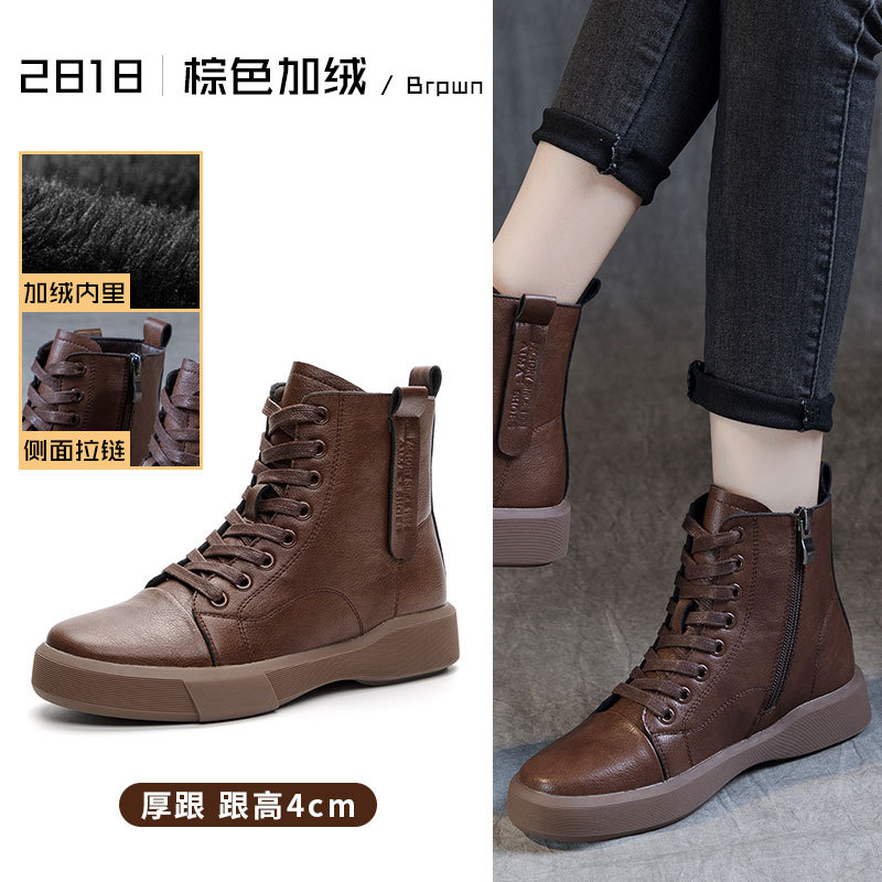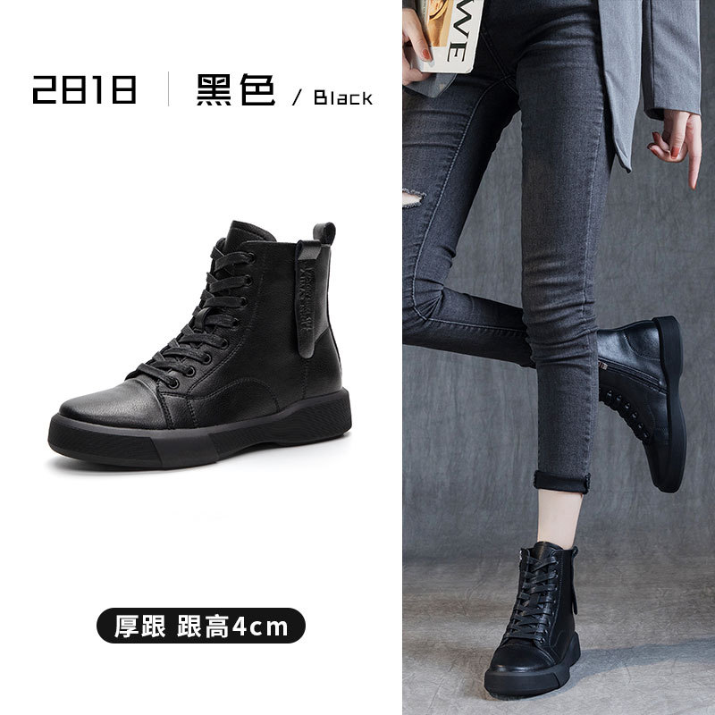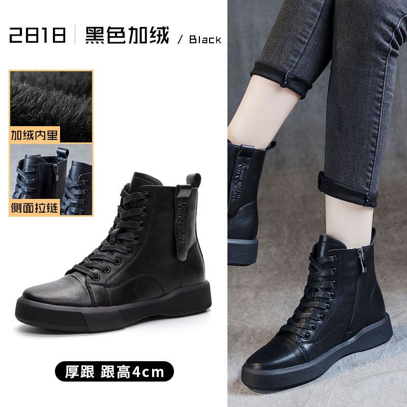 Универсальные осенне-зимние женские ботинки Мартин, на толстой подошве, из натуральной кожи, с флисовой подкладкой, короткие, черные, узкие сапоги для верховой езды, новинка 2025 года, женская обувь
