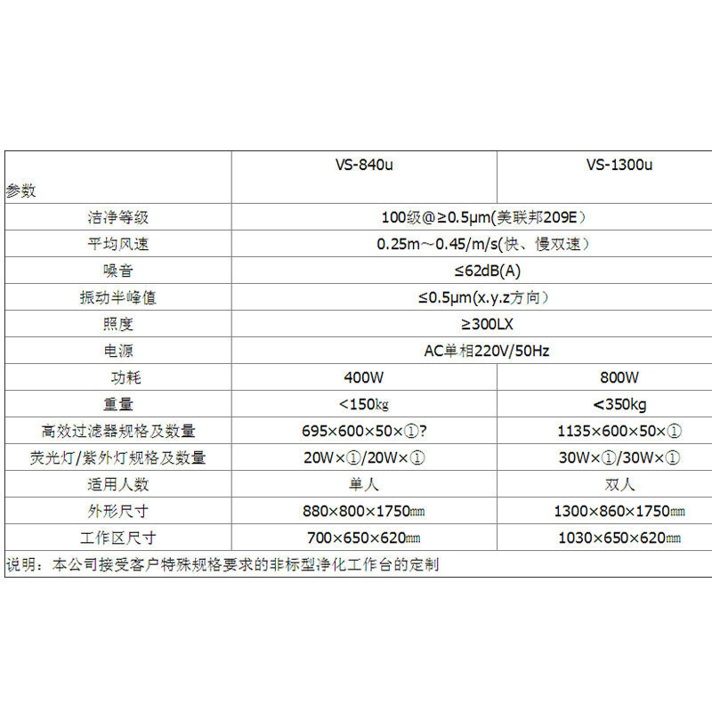 VS-840u/1300u系列净化工作台