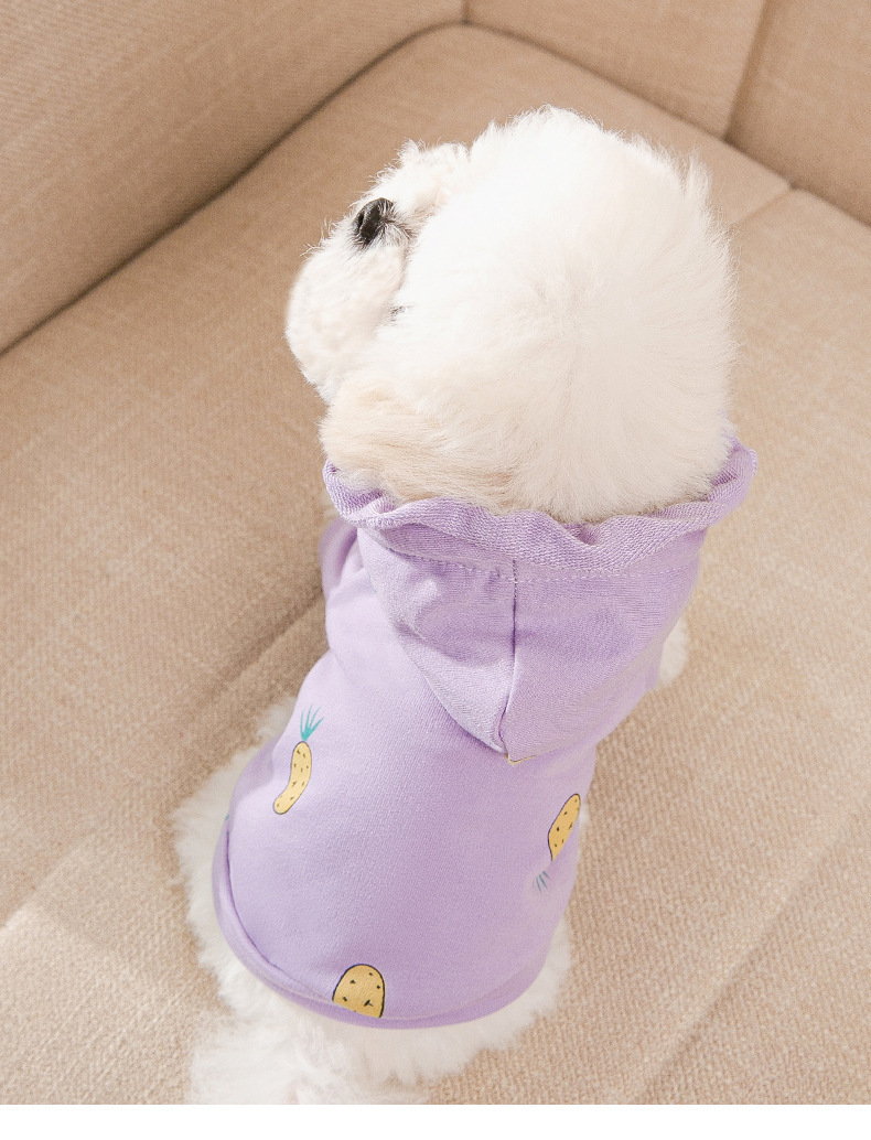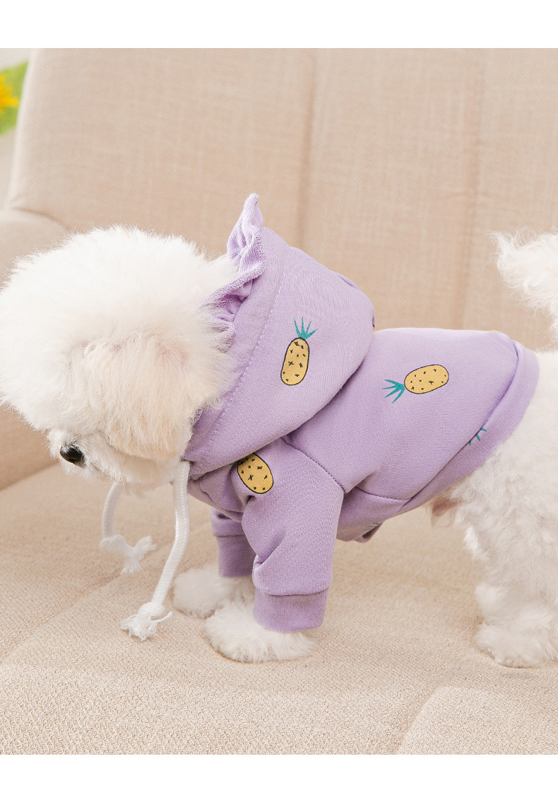 Осенне-зимняя тонкая толстовка с капюшоном и полным принтом ананаса с двумя ногами Маленькая и средняя собака Кошка Осенне-зимняя одежда для домашних животных