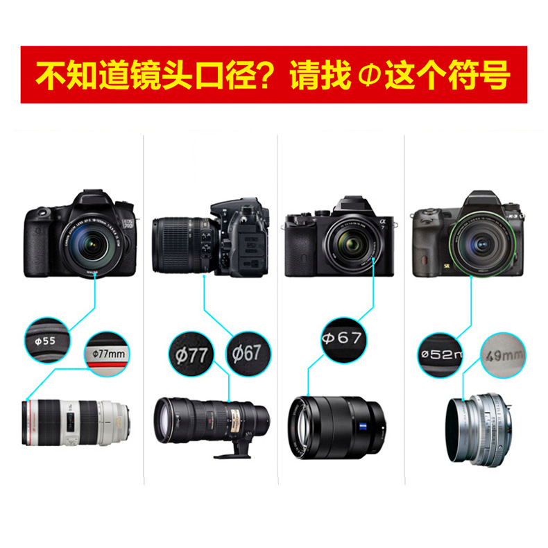 37,40.5, 43, 46, 49, 52, 55, 67, 72, 82, 86 мм.