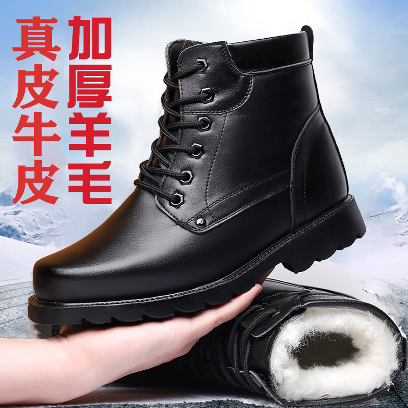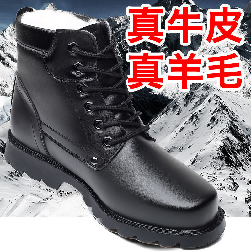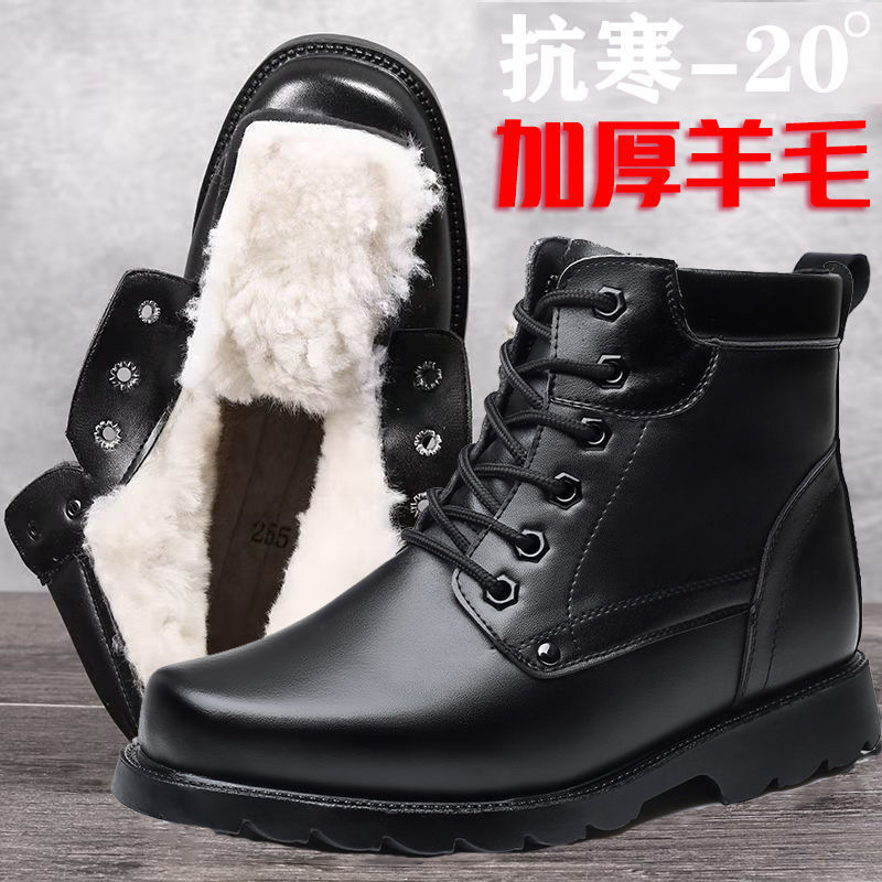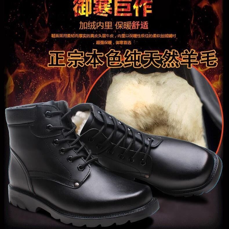 Толстая хлопковая обувь из воловьей кожи первого слоя на флисовой подкладке, зимние кожаные ботинки Martin, мужские шерстяные Нескользящие мужские зимние кожаные ботинки 2024 года