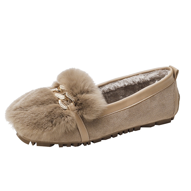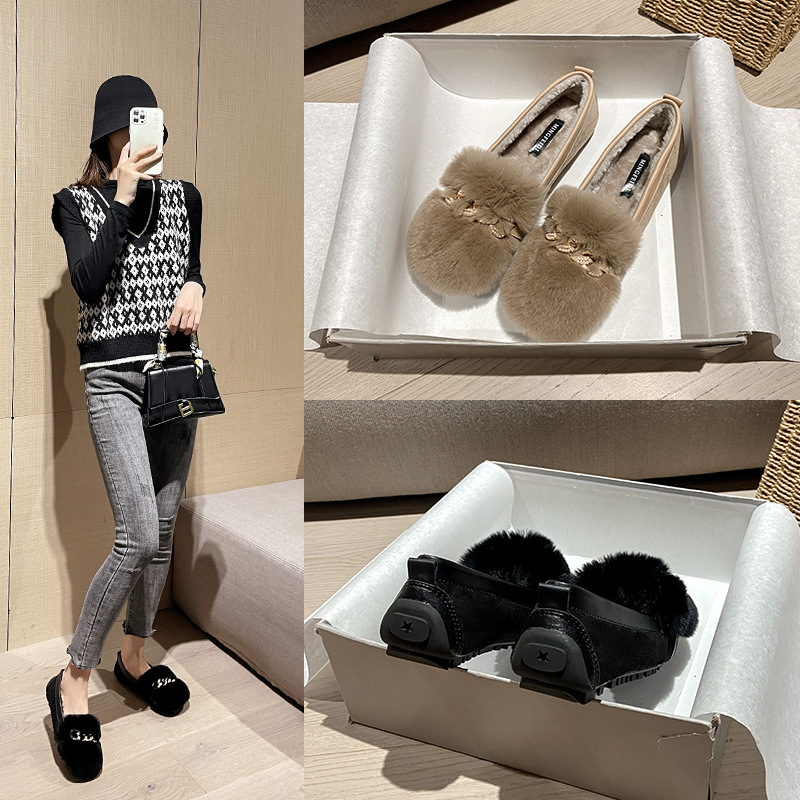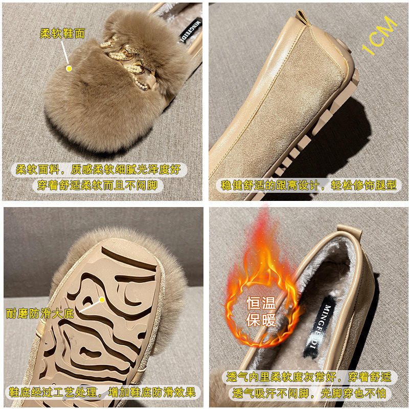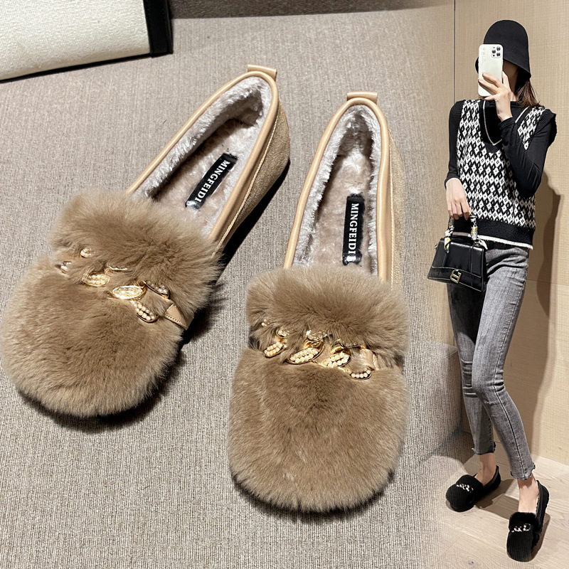 Обувь Maomu Женская осенне-зимняя одежда 2023 новая обувь из кроличьей шерсти больших размеров 41 A 43 Обувь из фасоли на флисовой подкладке хлопчатобумажная обувь на плоской подошве