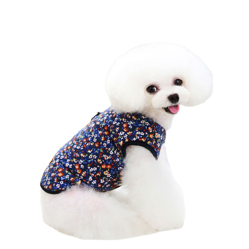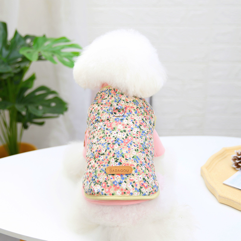 Одежда для домашних животных Осень и зима Новый жилет Тедди Маленькая собака Кошка Одежда для домашних животных Зима 21 Цветочный хлопковый жилет