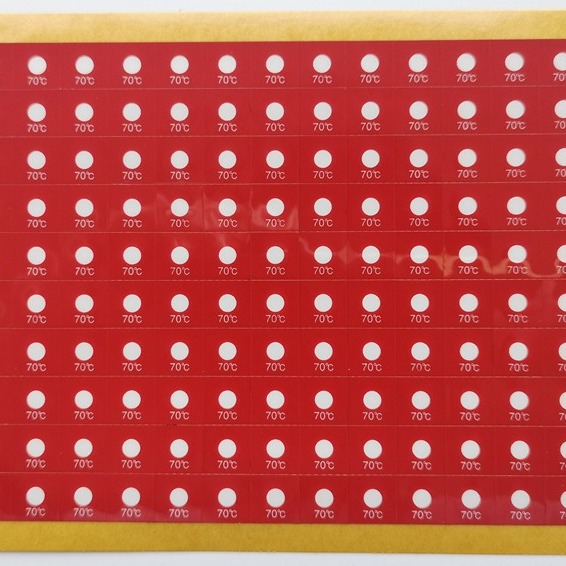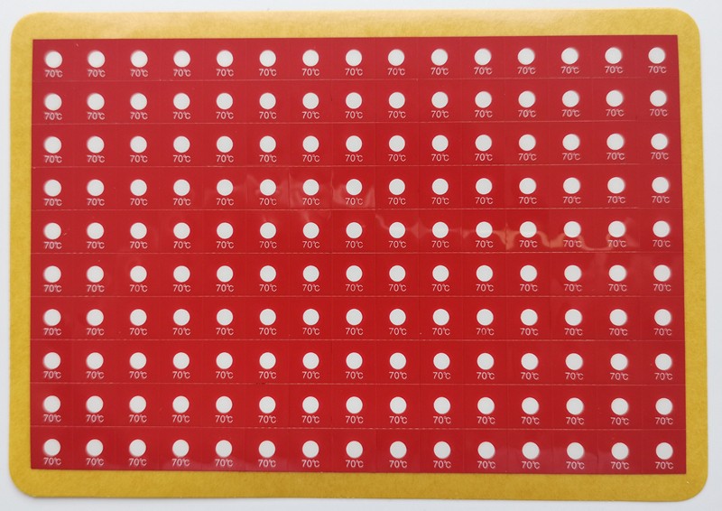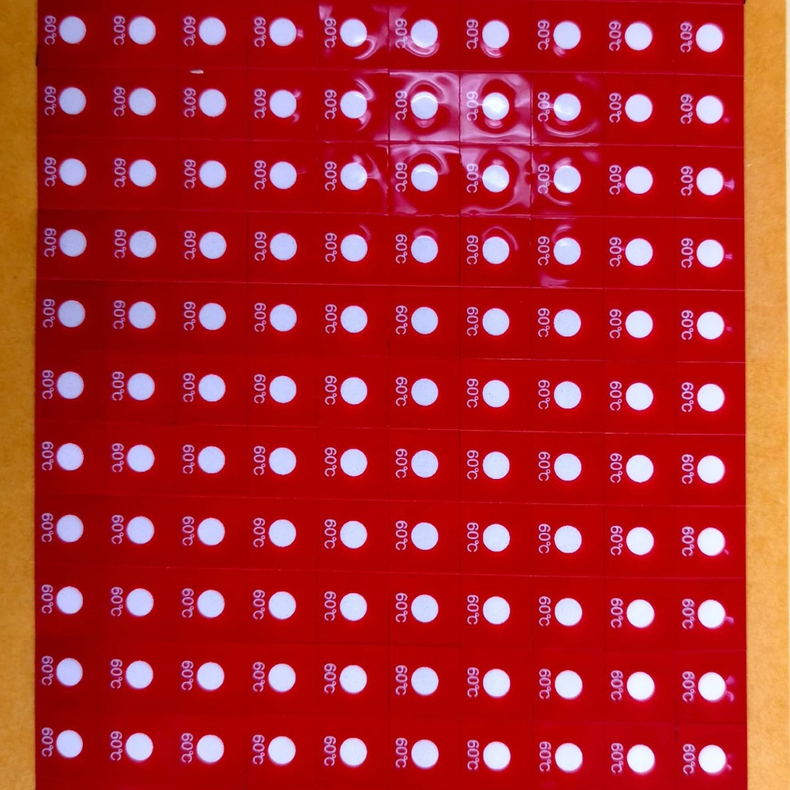 2.使用时如要知道监测部位温度逐渐上升的情况,可粘贴两片以上不同额定温度的变色测温贴片,亦可使用多个温度组合型等贴片(每片中含多种额定温度)。