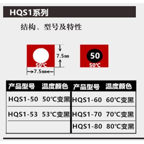 1.不可逆型测温贴片的基本型号及特性请见背面表格。