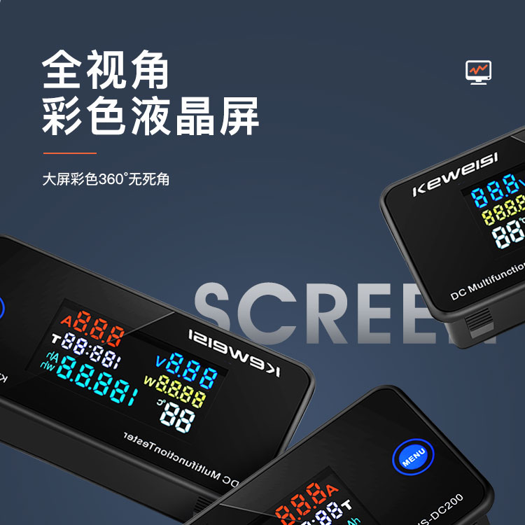 Цифровой измеритель напряжения и тока KEWEISI с цветным дисплеем, тестер мощности 0-200В 0-100А