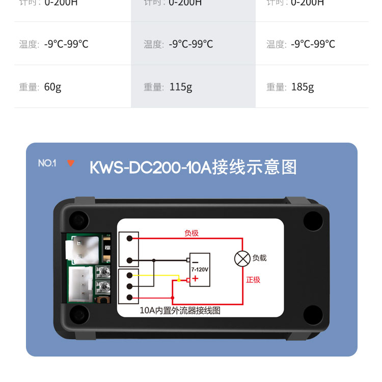 - 颜色分类: KWS-DC200-10A KWS-DC200-50A KWS-DC200-100A KWS-DC22带品字线