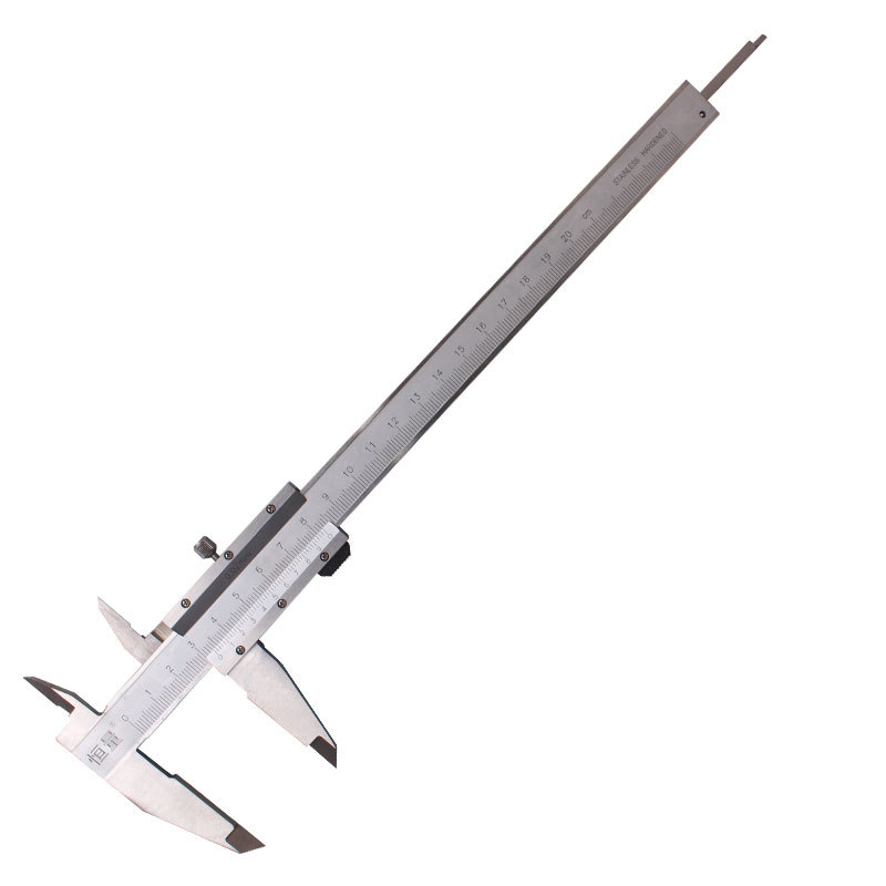 游标卡尺,是一种测量长度、内外径、深度的量具。游标卡尺由主尺和依附在主尺上能滑动的游标两部分构成。主尺一般以毫米为单位,而游标上则有10、20或50个分格,根据分格的不同,游标卡尺可分为十分度游标卡尺、二十分游标卡尺、五十分游标卡尺等,游标为10分度的有9mm,20分度的有19mm,50分度的有49mm。游标卡尺的主尺和游标上有两副活动量爪,分别是内测量爪和外侧量爪,内测量爪通常是用来测量内径,外径量爪通常用来测量长度和外径。