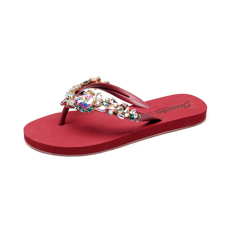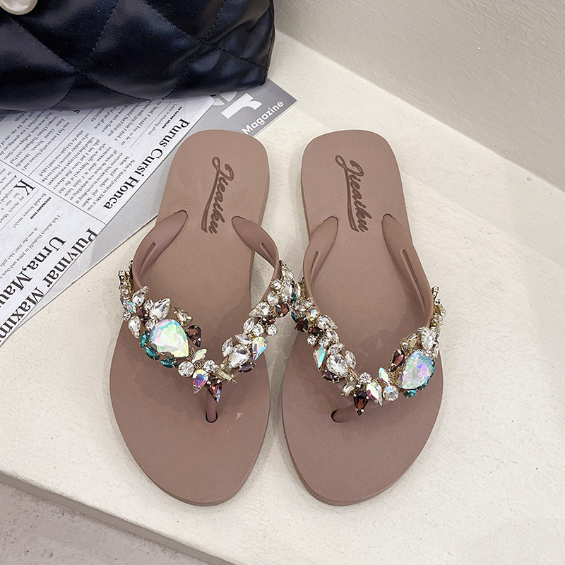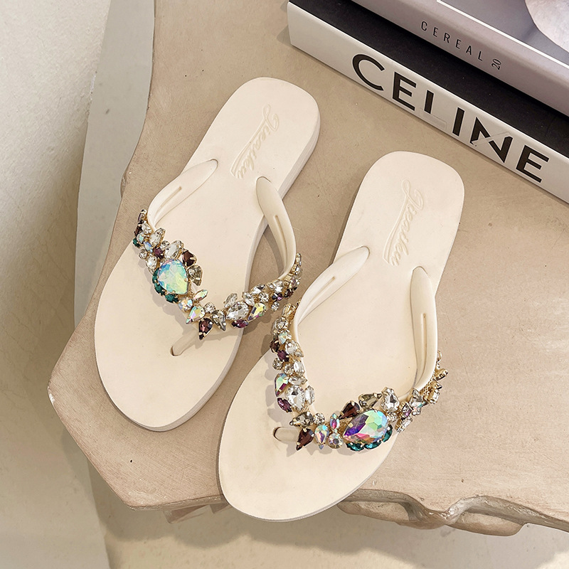 Новые летние шлепанцы со стразами, женские шлепанцы на открытом воздухе, пляжный отдых, плоские шлепанцы, женские оптом