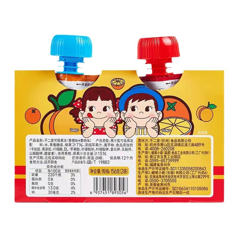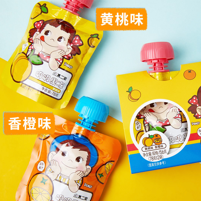 K1-Fujia 156г желе для сосания (апельсин + желтый персик) красное; K11-Fujia 156 сосущее желе (белый персик + виноград) фиолетовое