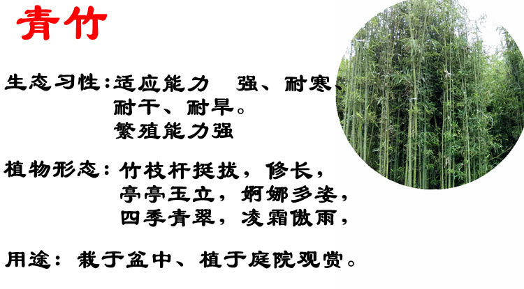 Мосо бамбук 3 см толщиной 1,8 метра; Бамбук толщиной 5 см 1,8 м; Фиолетовый бамбук 1,5 см толщиной 1,8 метра; Бамбук 3 см толщиной 1,8 метра; Фиолетовый бамбук 2 см толщиной 1,8 метра; Золотой бамбук 3 см толщиной 1,8 метра; Золотой бамбук толщиной 1 см 1,8 м; Золотой бамбук 2 см толщиной 1,8 метра; Бамбук толщиной 1 см 1,8 метра; Нантянжу 80-1 м высотой; Стальной бамбук 3 см толщиной 1,8 метра; Фиолетовый бамбук толщиной 3 см 1,8 метра; Ранний сад бамбук толщиной 2 см 1,8 метра; Бамбук 2 см толщиной 1,8 метра; Zizhu 1 см толщиной 1,8 м; Zaoyuan бамбук 3 см толщиной 1,8 метра; Золотой инкрустированный нефрит 2 см толщиной 1,8 метра; Стальной бамбук 5 см толщиной 1,8 метра; Золотой инкрустированный нефрит 3 см толщиной 1,8 метра; Золотой инкрустированный нефрит 1 см толщиной 1,8 метра; Ранний сад бамбук толщиной 1 см 1,8 метра