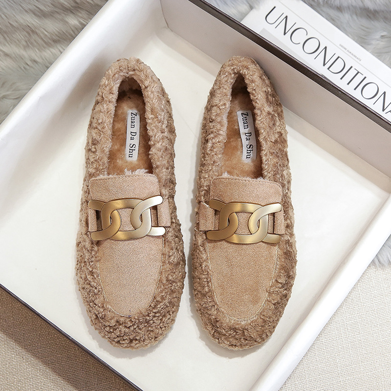 2025 новых стильных женских меховых туфель, зимняя верхняя одежда, лоферы из овечьей шерсти на толстой подошве с флисовой подкладкой, женская обувь больших размеров для беременных, размеры от 41 до 43.