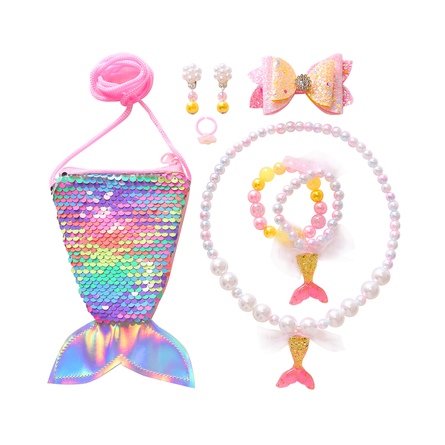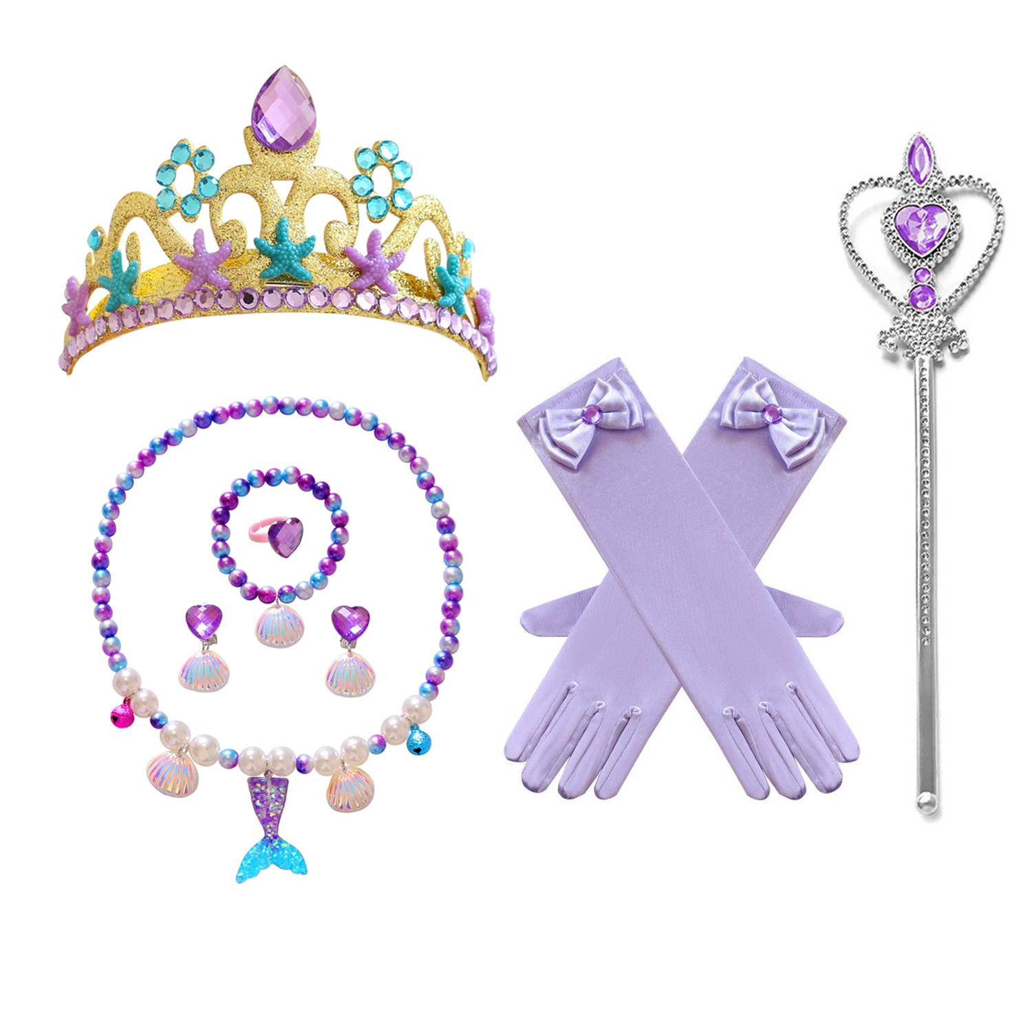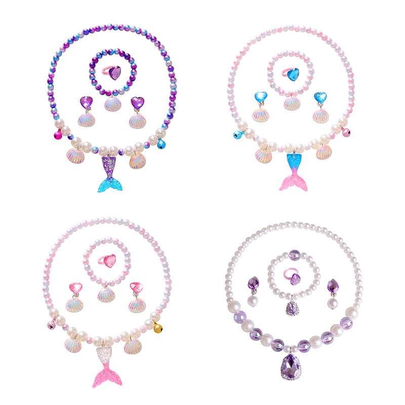 2021 Детское Ожерелье Хвост Русалки Жемчужное Ожерелье Браслет Кольцо Серьги Костюм Детские Аксессуары Для Девочек